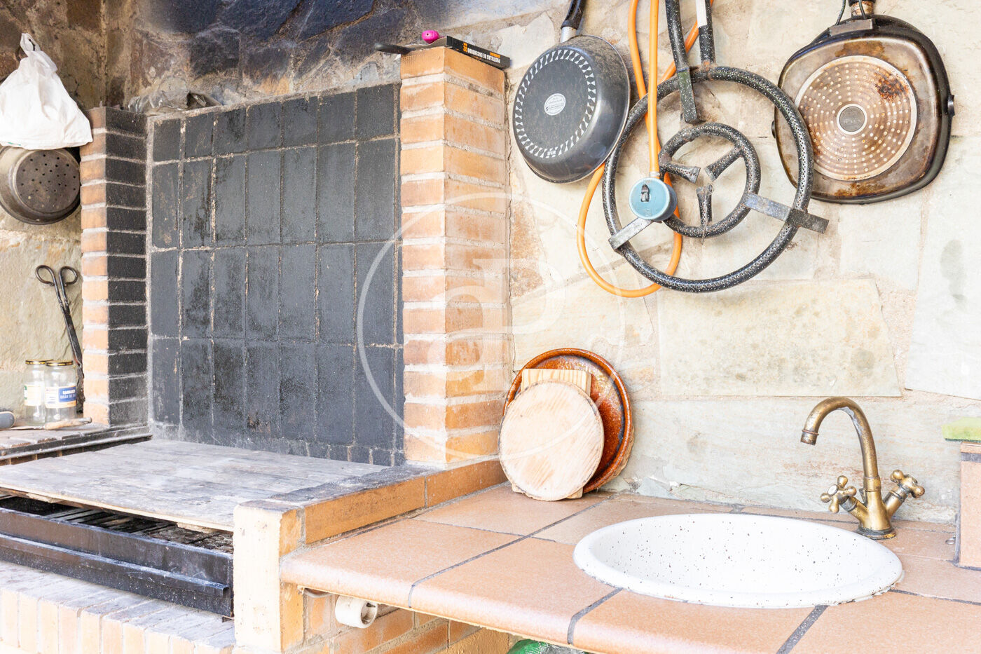 A l’exterior, d’un costat hi ha la piscina privada, i de l’altre, un petit hort i una barbacoa d’obra per gaudir amb família o amics.