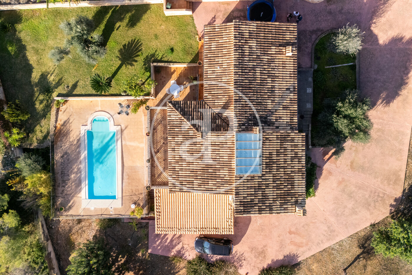 A l’exterior, la vila disposa d’una piscina de 40 m², envoltada d’un jardí consolidat amb oliveres i arbres cítrics, a més d’un pou antic recentment reformat. Una segona cuina amb barbacoa i zones “al fresco” permet gaudir plenament de l’aire lliure.