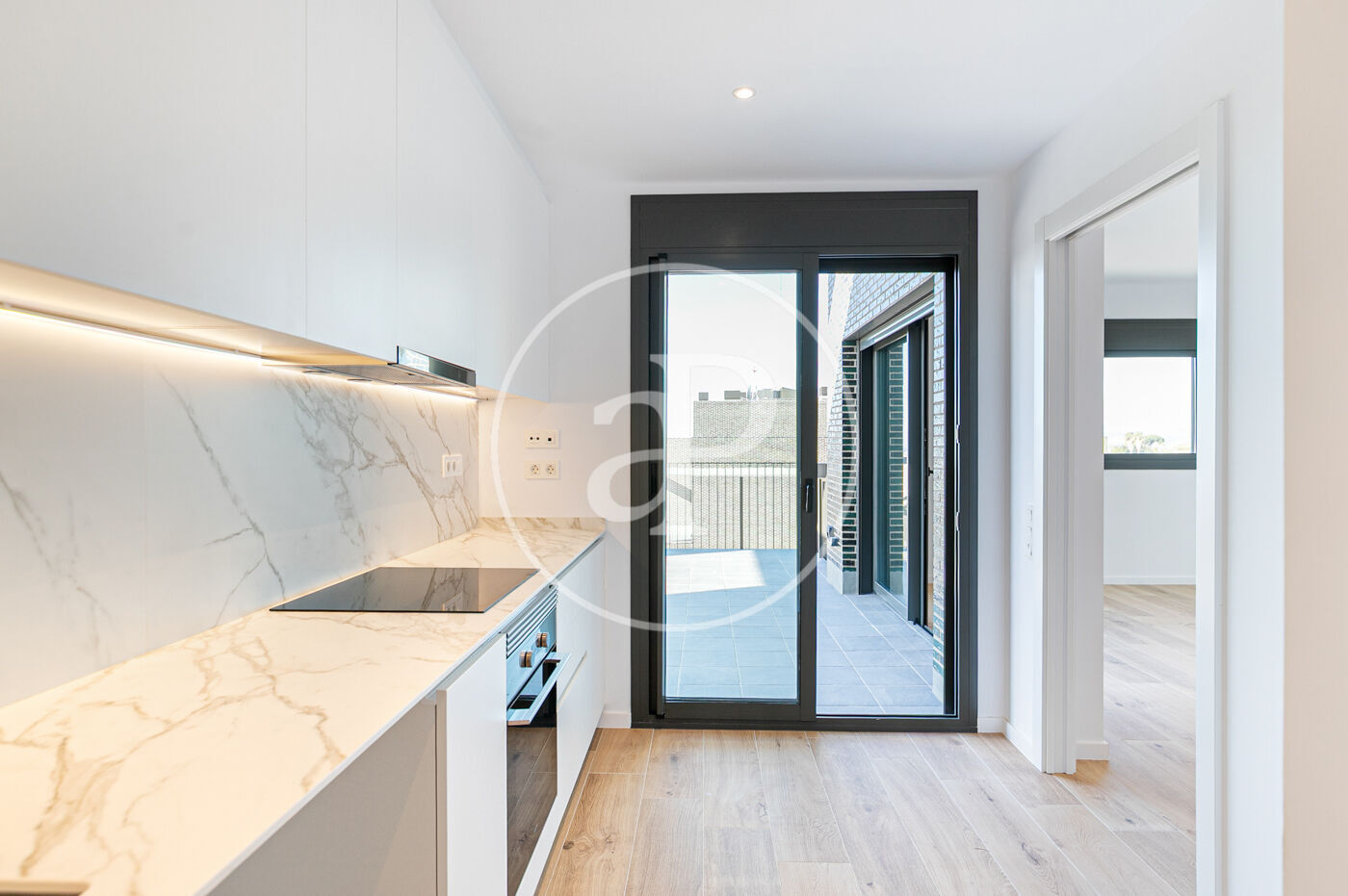 Àtic d’obra nova amb aparcament, zona comunitària i piscina a la zona de Finestrelles, Esplugues de Llobregat.