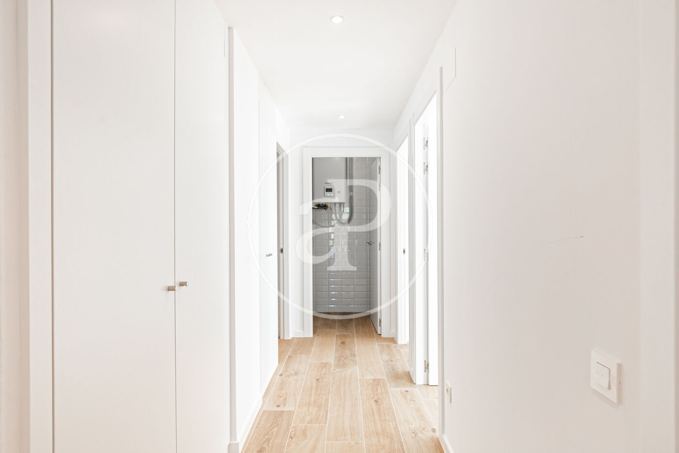 La propietat disposa de 100 m² útils distribuïts en 3 dormitoris exteriors dobles amb armaris encastats, 2 banys complets i un saló amb sortida a una terrassa de 40 m². Un dels banys compta amb dutxa dins de la suite, i l’altre amb banyera per compartir entre les dues altres habitacions.