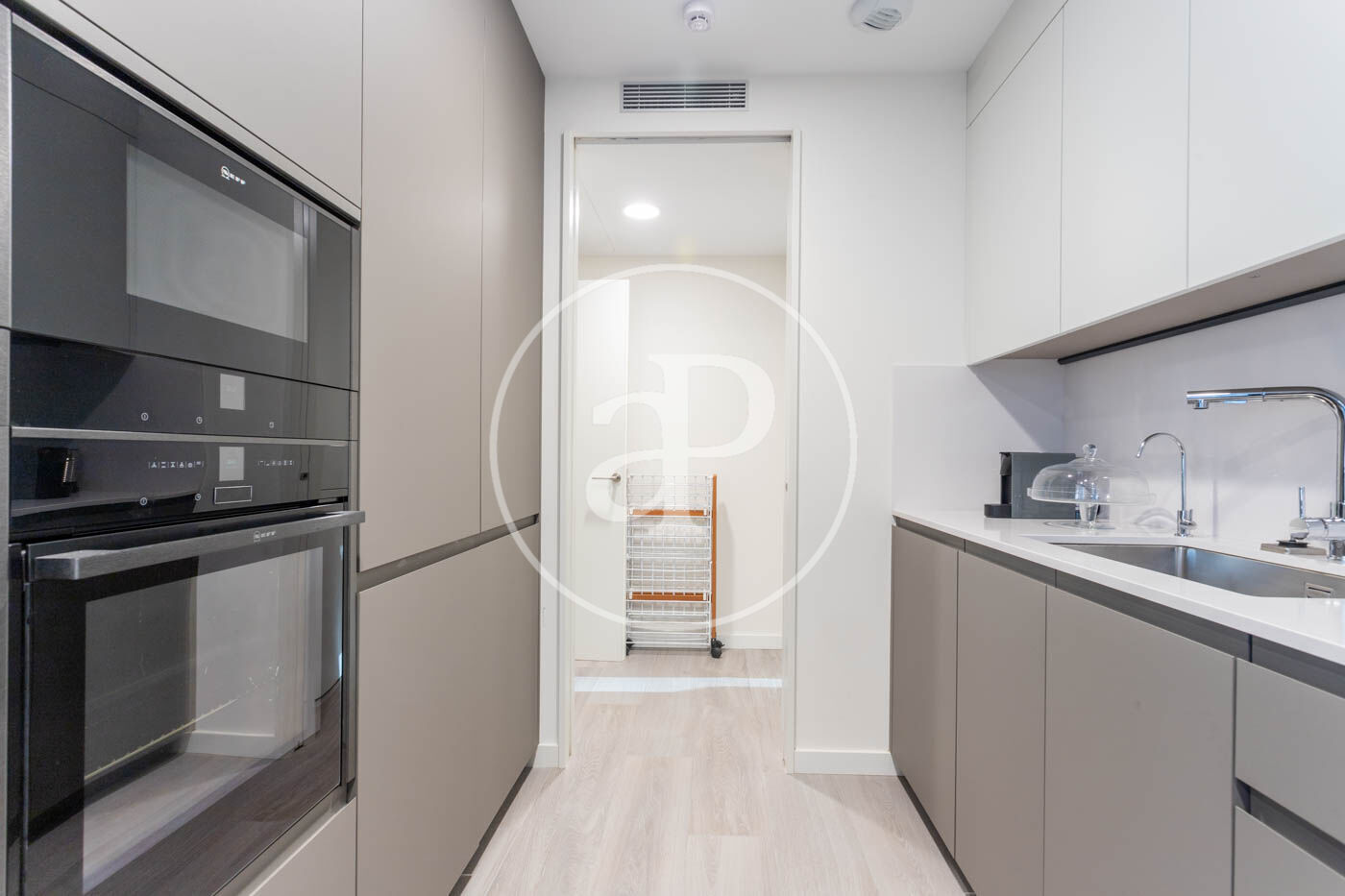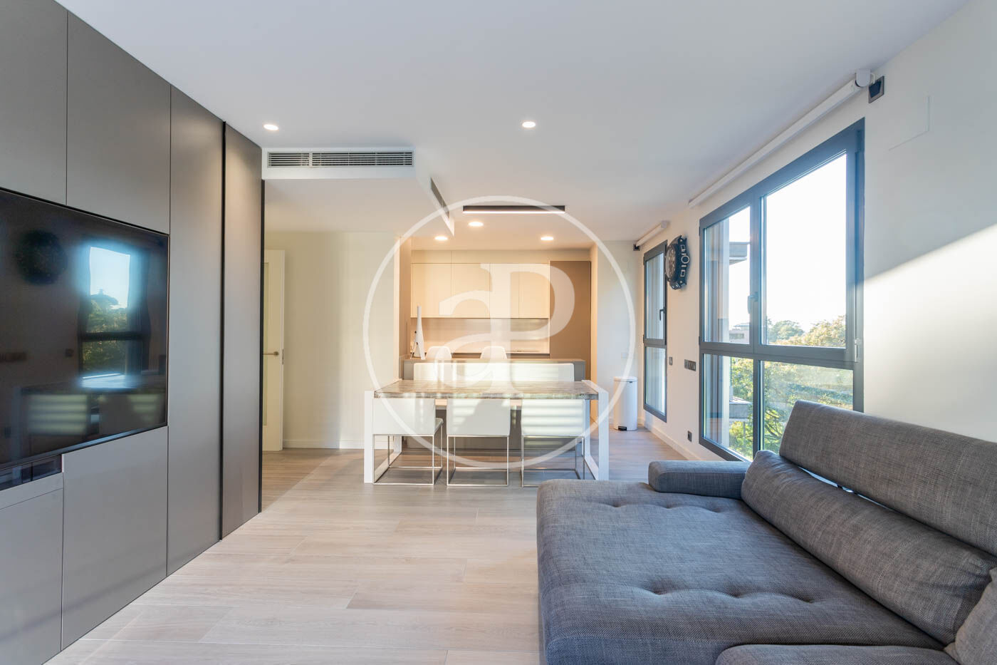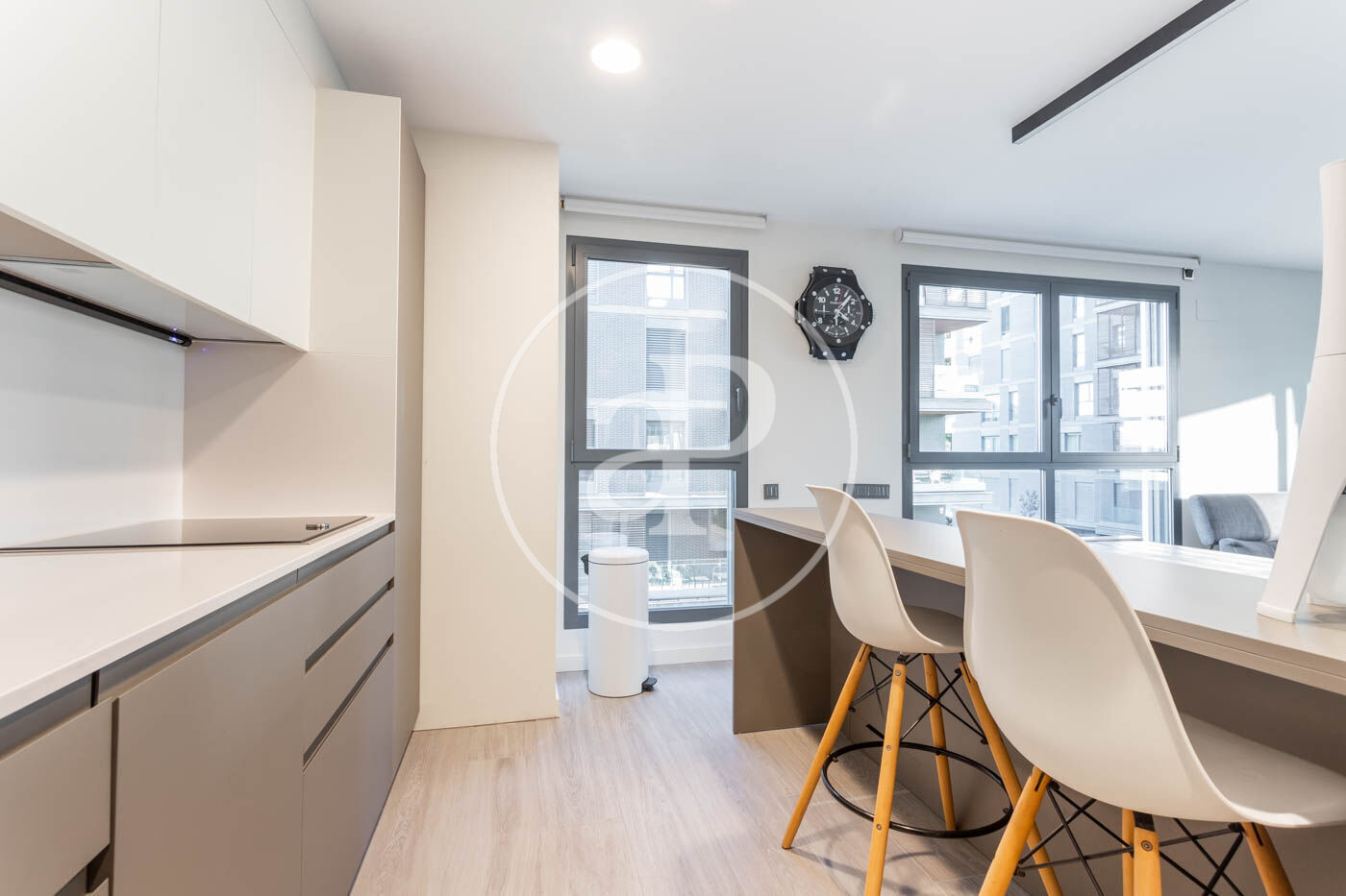 Habitatge molt lluminós, amb ampli menjador, cuina oberta totalment equipada, amb electrodomèstics d'alta gamma, i una zona d’aigües independent que facilita l’organització i l’aprofitament de tot l’espai.
