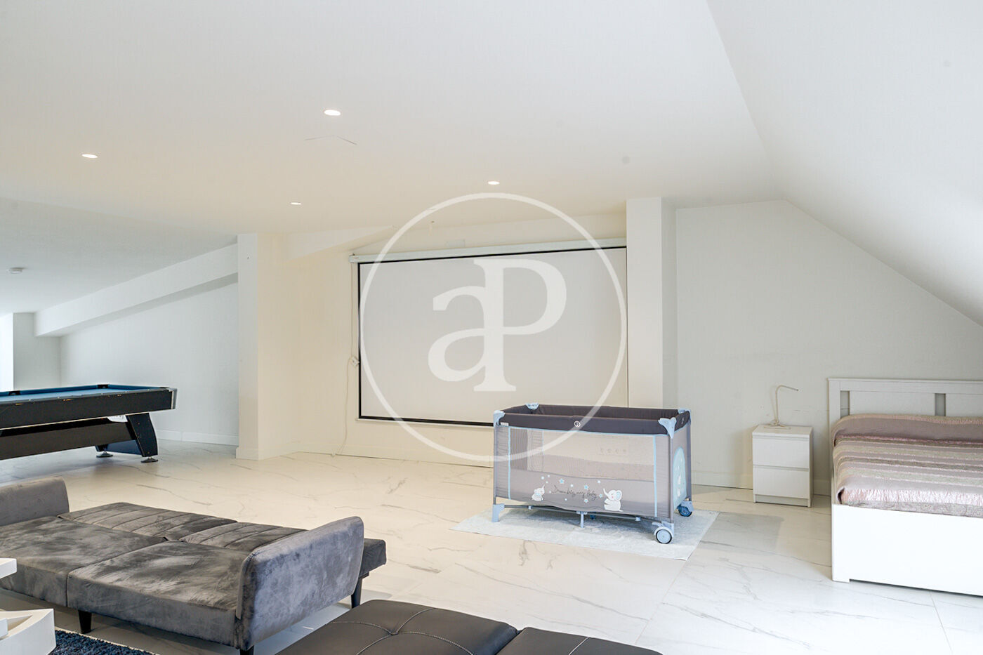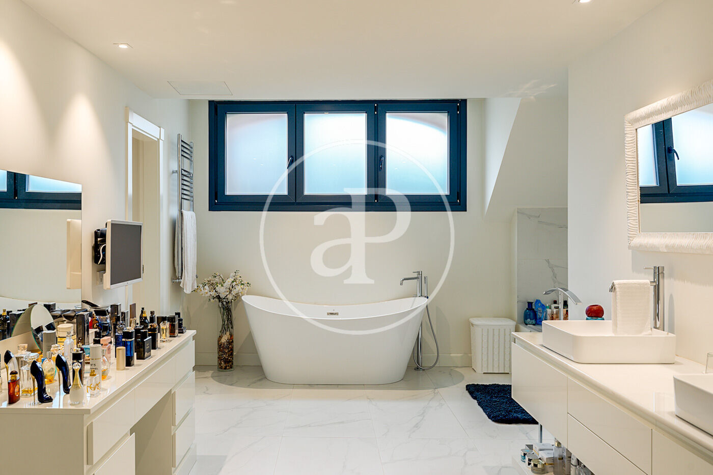 La propietat disposa de 6 dormitoris, 6 banys, piscina, llar de foc, gimnàs, 3 places d'aparcament, aire condicionat, armaris encastats, bugaderia, balcó, pati posterior, calefacció i traster.