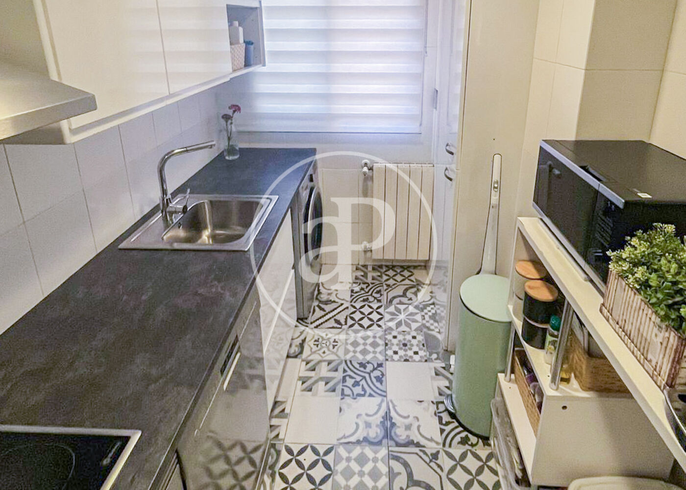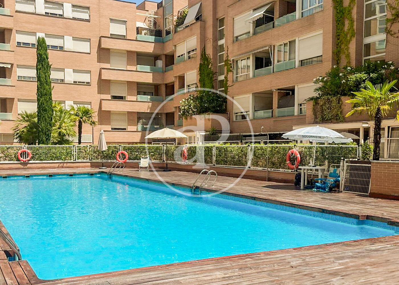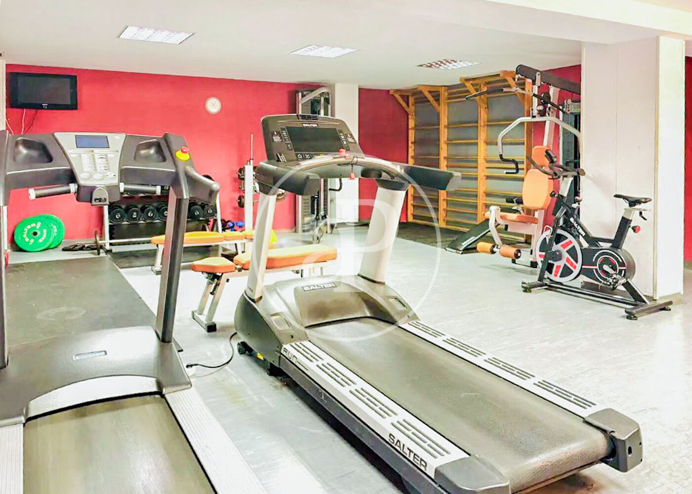 La propietat disposa de 2 dormitoris, 1 bany, piscina, gimnàs, 1 plaça d’aparcament, aire condicionat, armaris encastats, bugaderia, pati posterior, calefacció, consergeria i traster.