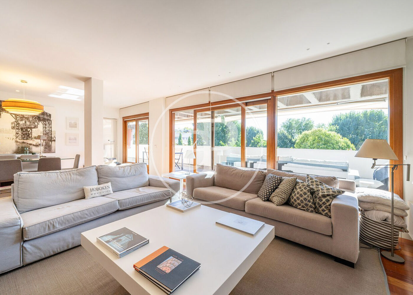 A la cobejada zona de La Misió, molt a prop de les Rambles, trobem aquest àtic de 145 m² que combina amplitud, llum natural i un disseny modern amb tocs càlids. Disposa d’una terrassa de 10 m² amb vistes obertes, perfecta per gaudir del clima mediterrani. El saló-menjador, ampli i lluminós amb sortida directa a la terrassa, destaca pel seu estil contemporani i acollidor, amb una cuidada selecció de mobles i detalls decoratius que aporten personalitat: sofàs en tons blaus, taula de centre en fusta natural i peces úniques que creen un ambient elegant i relaxat. La il·luminació també juga un paper clau, amb làmpades de disseny que aporten calidesa i caràcter. La cuina oberta és minimalista i funcional, amb mobles blancs, electrodomèstics integrats i una illa central en fusta que afegeix contrast i sofisticació. És un espai pensat per gaudir tant del dia a dia com de trobades informals. Les habitacions mantenen la mateixa línia estètica: la principal amb bany en suite amb banyera i armaris encastats, combina tons neutres amb una paret en gris fosc que aporta profunditat, mentre que la segona habitació ofereix un ambient versàtil, ideal com a dormitori o despatx, amb detalls en fibres naturals i tèxtils colorits. Disposa d’un altre bany complet amb plat de dutxa. Els sòls de parquet fosc, les finestres de gran format i la il·luminació acurada reforcen la sensació de confort i estil a tot l’àtic. Té aire condicionat per splits i calefacció a gas. Inclou plaça d’aparcament i traster, i es lloga completament moblat i equipat. A més, les despeses d’aigua, comunitat i IBI estan incloses en el preu, cosa que el converteix en una opció còmoda i sense sorpreses. Mascotes a consultar. T’imagines vivint aquí? Esperem la teva trucada.