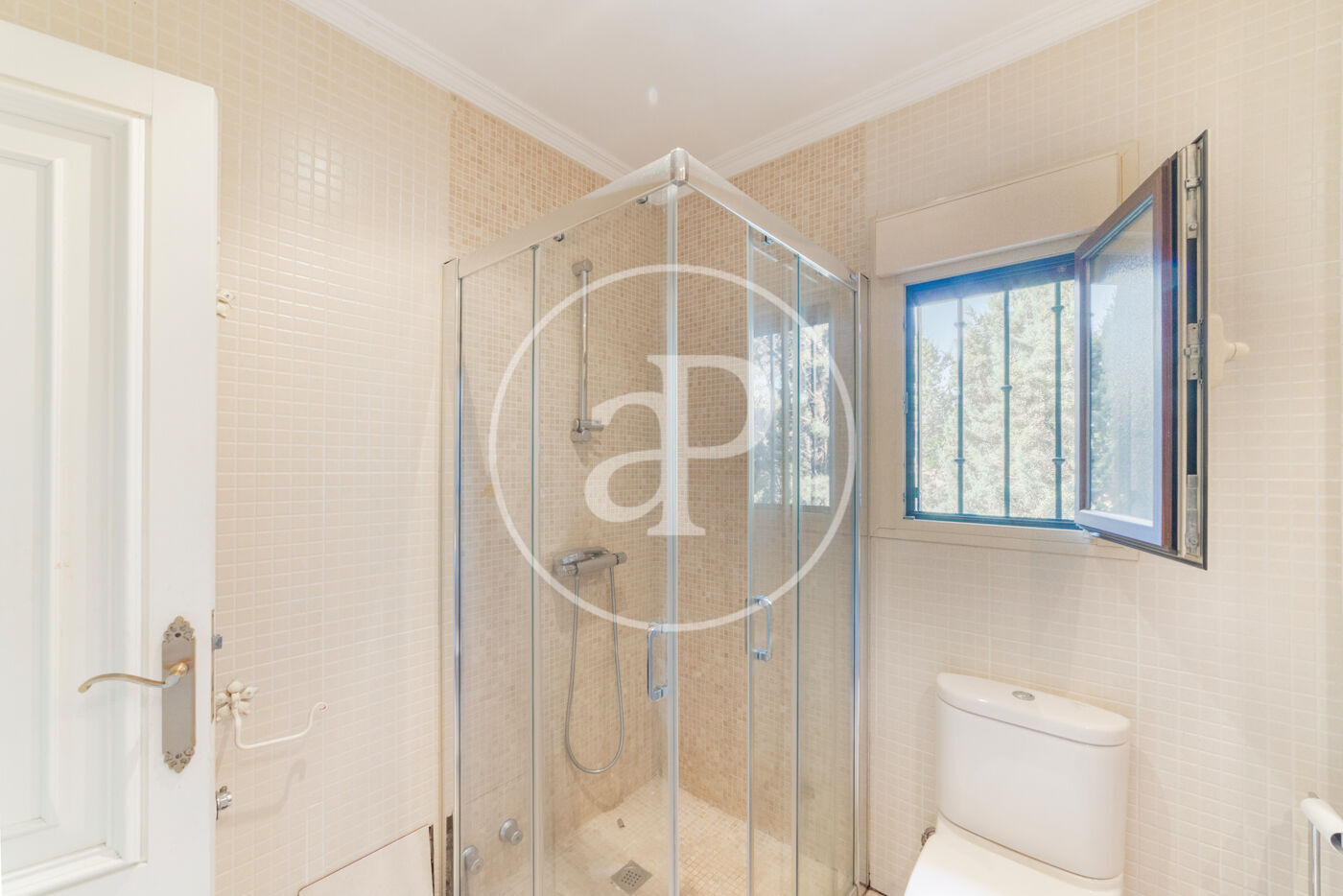 La propietat disposa de 6 dormitoris, 5 banys, piscina, llar de foc, plaça d’aparcament, aire condicionat, armaris encastats, bugaderia, balcó, pati posterior, calefacció i traster.