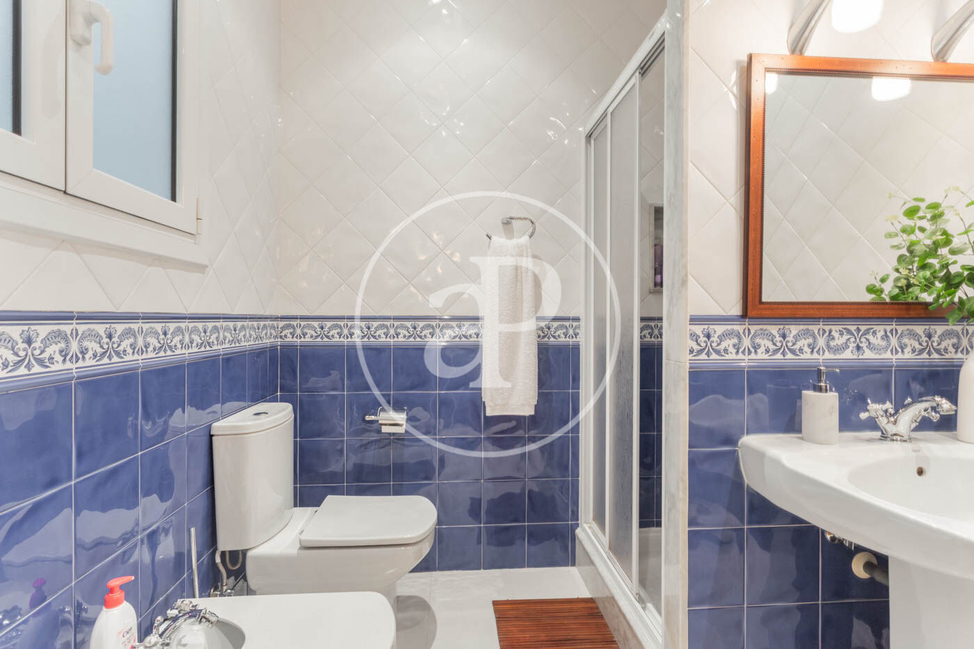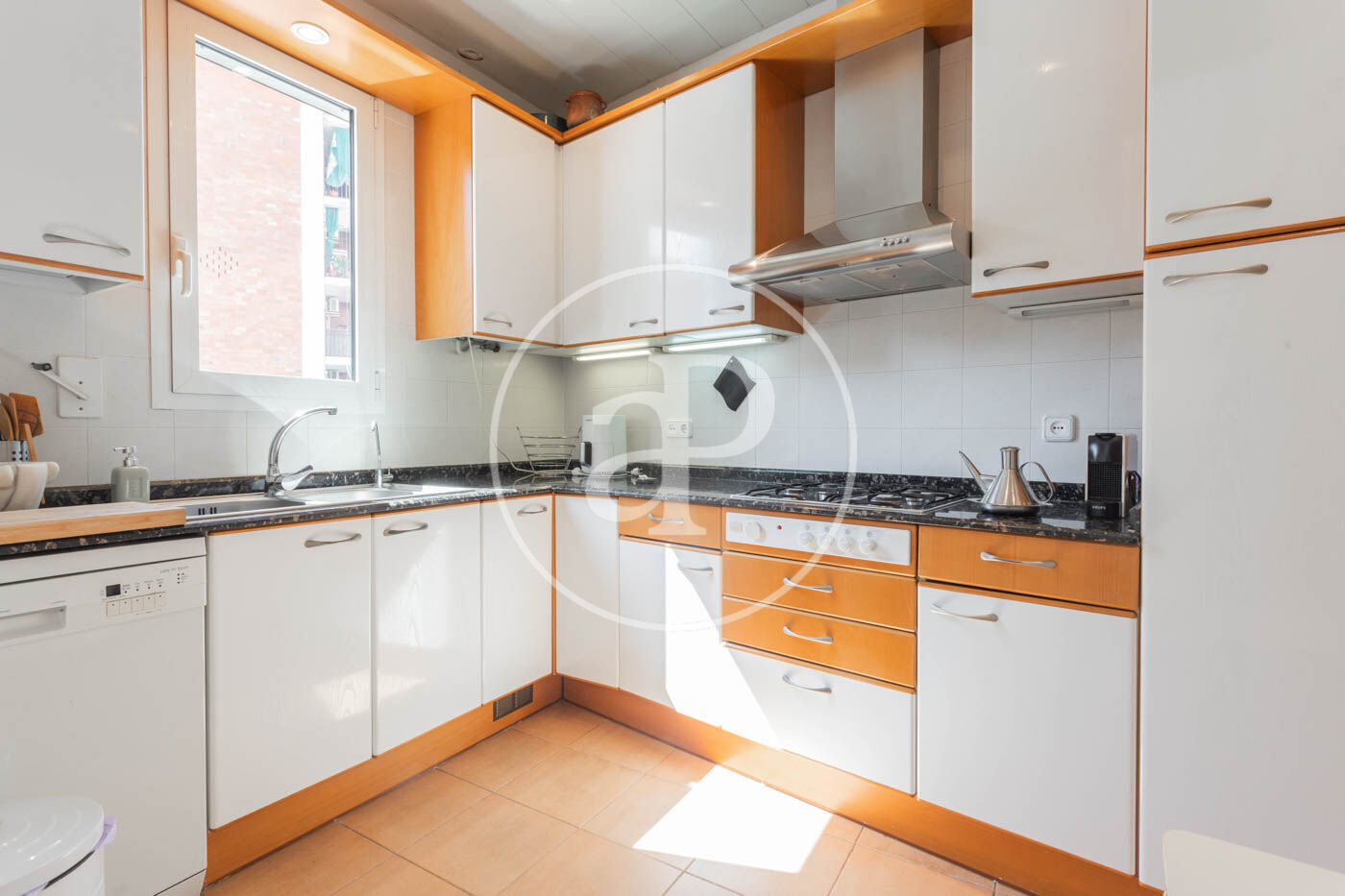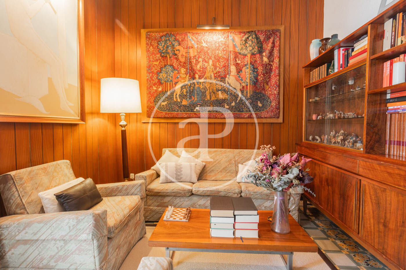 El pis té doble orientació, sud i nord, la zona de dia orientada a sud i amb sortida a la terrassa de 30 metres quadrats consta de saló i menjador que connecta amb una saleta amb sortida a galeria, cuina i zona d'aigües, més un bany de cortesia. La zona de nit, entrant a l'esquerra, consta de 4 habitacions, 2 individuals grans, 1 bany complet en molt bon estat i dues habitacions dobles molt àmplies amb sortida a balcó.