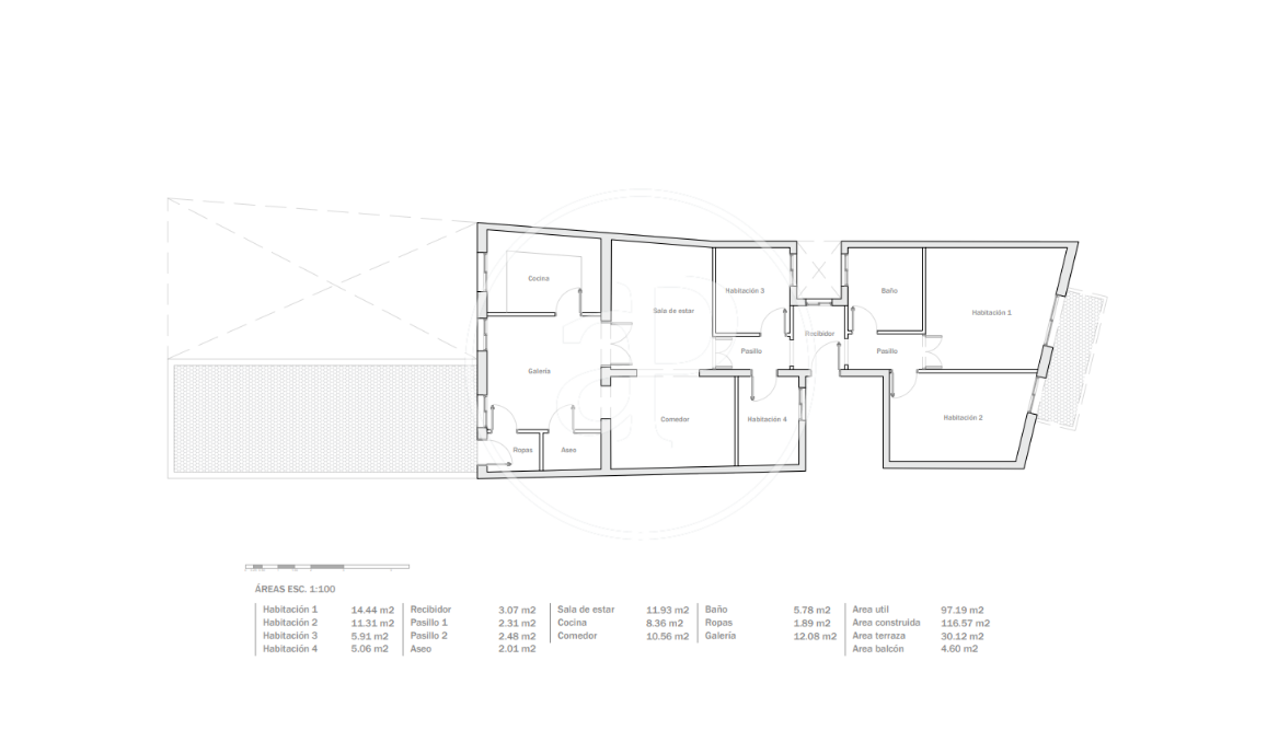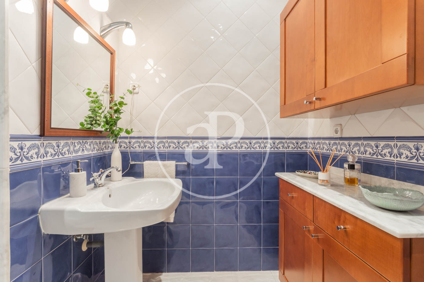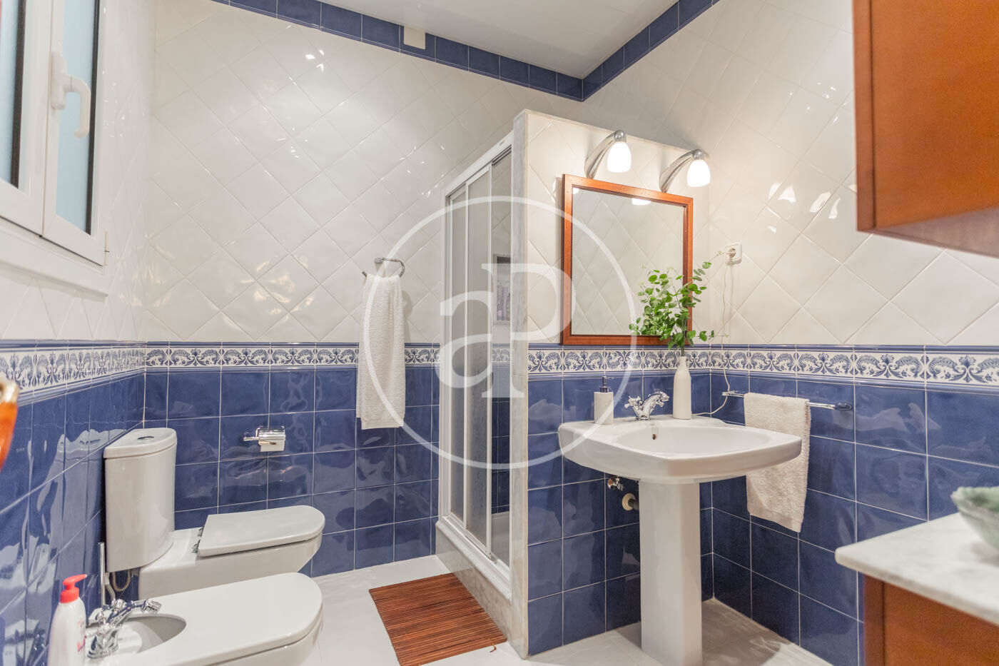 El pis té doble orientació, sud i nord, la zona de dia orientada a sud i amb sortida a la terrassa de 30 metres quadrats consta de saló i menjador que connecta amb una saleta amb sortida a galeria, cuina i zona d'aigües, més un bany de cortesia. La zona de nit, entrant a l'esquerra, consta de 4 habitacions, 2 individuals grans, 1 bany complet en molt bon estat i dues habitacions dobles molt àmplies amb sortida a balcó.