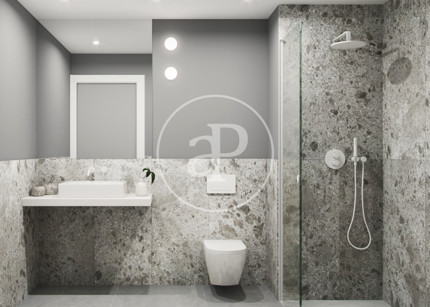 • Banys amb acabats d’alta gamma: dutxa extraplana, mampara de vidre, sanitaris suspesos i mobles de disseny.