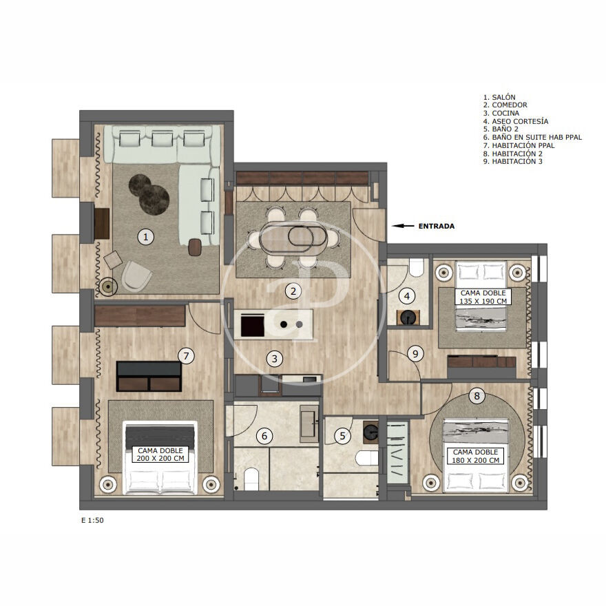 Pis moblat de 118 m2 amb vistes a la zona de Almagro, Madrid.