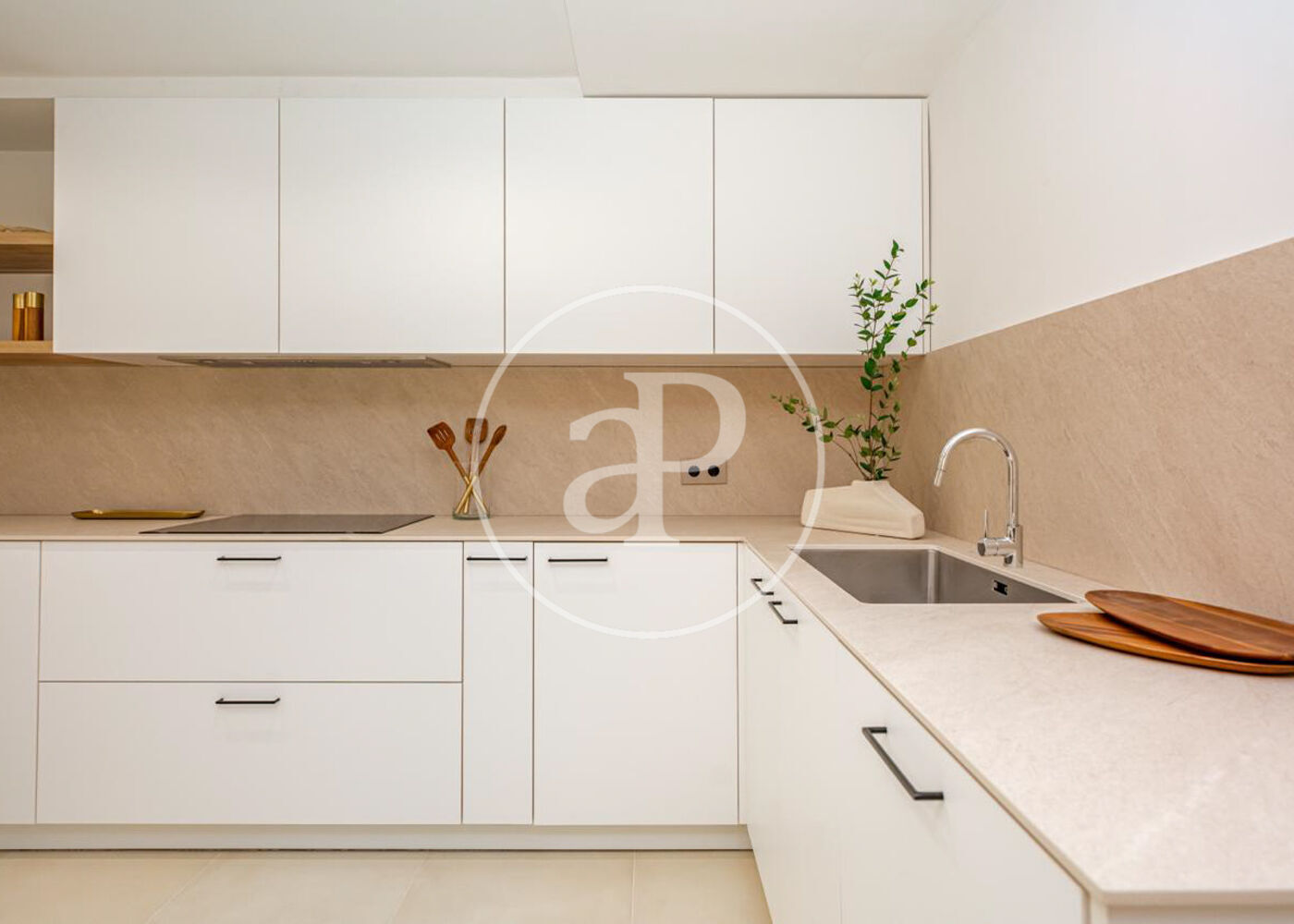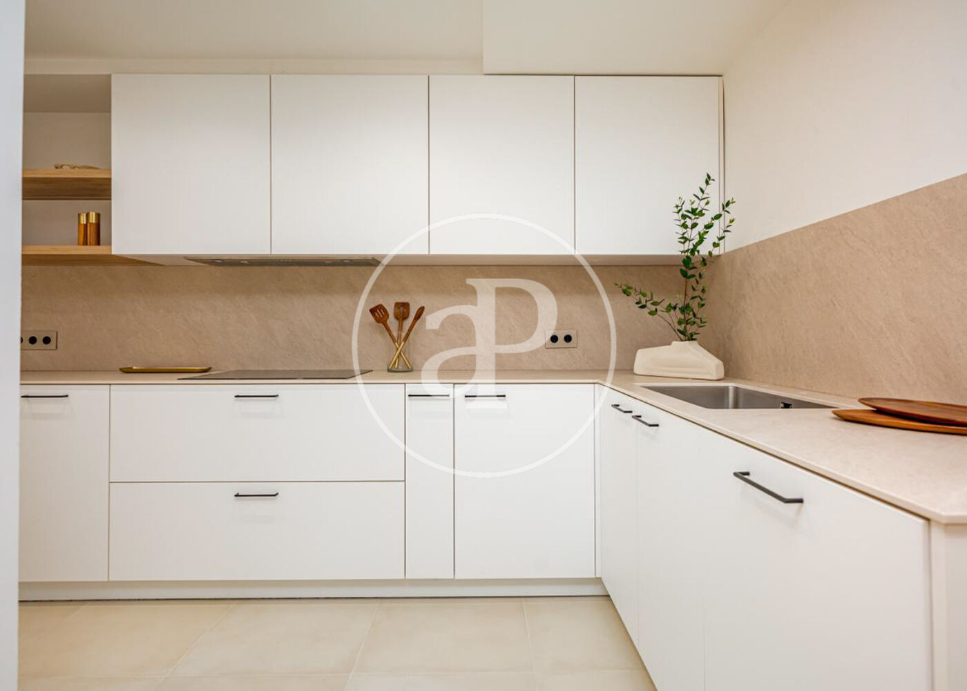 En una de les zones més cobejades de Palma, al Passeig Mallorca, es troba aquest exclusiu habitatge d’obra nova que destaca pel seu disseny contemporani, materials nobles i una gran lluminositat. L’edifici on s’ubica aquest habitatge té la façana revestida amb una cel·losia de panells corredissos amb lames de fusta. Amb 152 m², l’habitatge es distribueix en un ampli i lluminós saló-menjador amb cuina integrada, equipada amb electrodomèstics d’alta gamma de la marca Miele, mobles panellats de fusta natural i una pràctica illa de pedra natural de Binissalem que crea un ambient càlid i sofisticat. Disposa també d’una zona de bugaderia independent i un lavabo de cortesia. L’espai rep una llum meravellosa gràcies als grans finestrals de terra a sostre amb vistes clares a la zona verda del passeig. La zona de nit compta amb tres habitacions dobles, armaris encastats amb portes de fusta massissa de noguera francesa i interiors de fusta de cedre, i dos banys complets amb plat de dutxa, un d’ells en suite. L’habitació principal disposa d’un ampli vestidor. Els acabats són de màxima qualitat, combinant disseny, funcionalitat i confort: terres de parquet de roure, aixetes de la reconeguda firma Dornbracht, fusteria exterior de primer nivell, calefacció per terra radiant, climatització centralitzada amb control individual i un sistema d’estalvi energètic mitjançant renovació d’aire (aerotèrmia), així com sistema de domòtica. Per completar aquesta experiència de luxe, l’edifici disposa d’instal·lacions com un gimnàs completament equipat, piscina interior climatitzada, bany turc, una cuidada zona enjardinada a l’entrada principal, plaça d’aparcament i traster opcional, oferint comoditat i benestar en un entorn exclusiu. Les despeses de comunitat i l’IBI estan inclosos en el preu del lloguer; la resta de subministraments aniran a càrrec de l’arrendatari. Ubicació excel·lent, a només 5 minuts a peu del cobejat carrer comercial Jaume III, envoltat de restaurants, centres comercials, centres de salut i amb molt bona comunicació amb l’aeroport, escoles i diverses platges de la zona. Mascotes a consultar. T’imagines viure aquí? Esperem la teva trucada.
