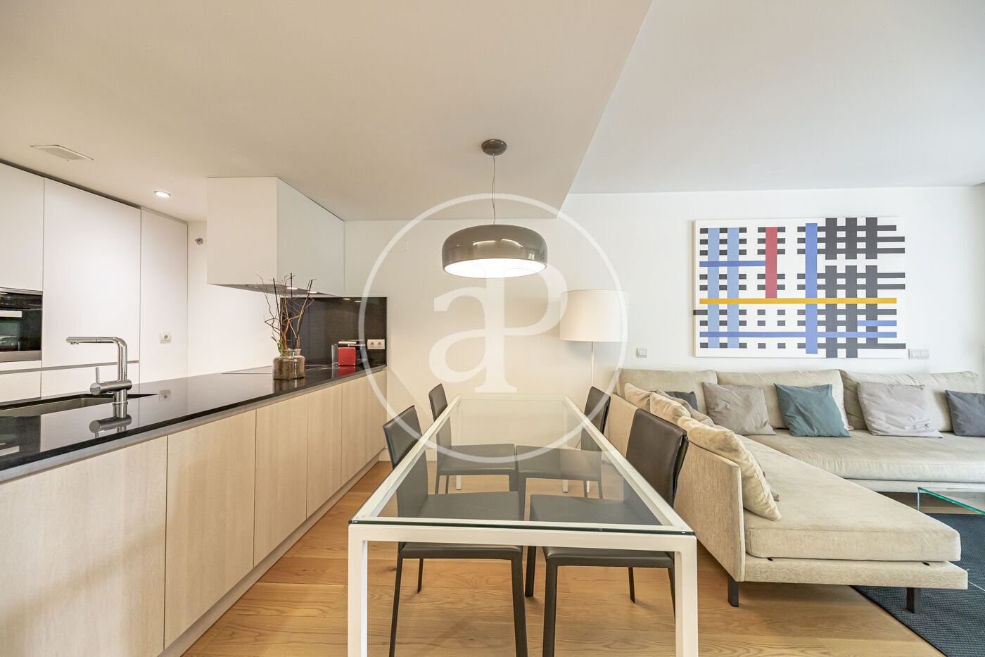 dormitori, 1 bany, gimnàs, plaça d’aparcament, aire condicionat, armaris encastats, balcó, calefacció i consergeria.