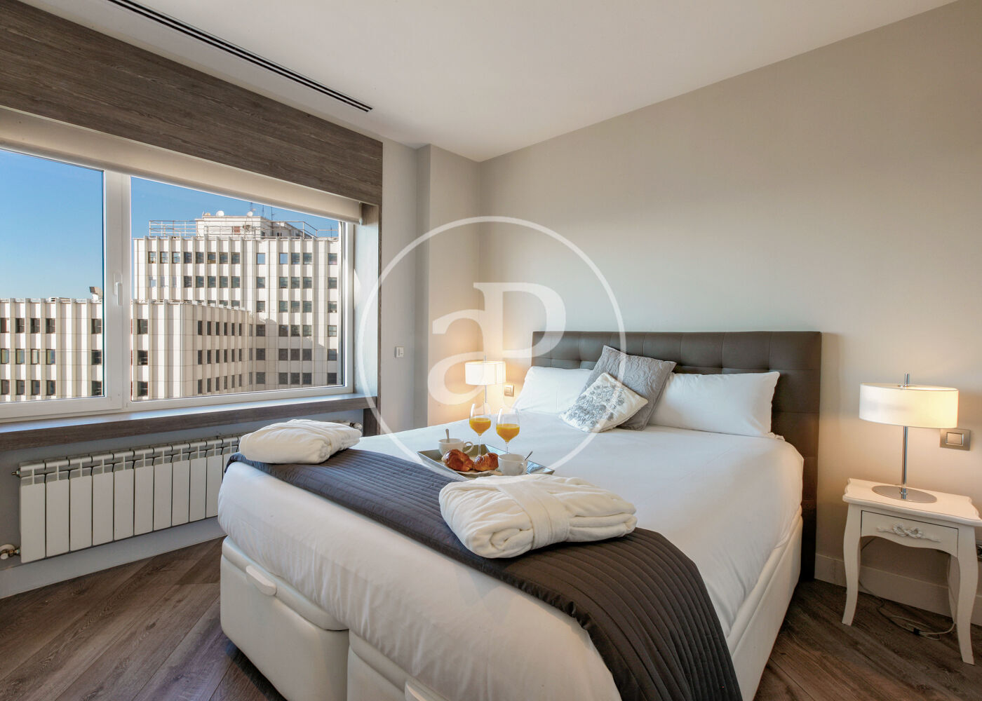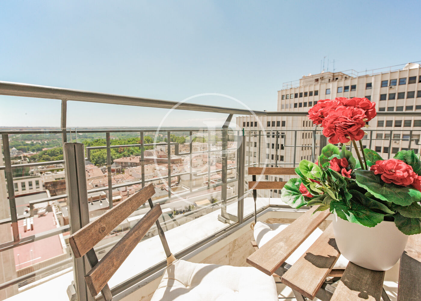 Pis moblat de 75 m2 amb terrassa de 6m2 i vistes a la zona de Argüelles, Madrid.