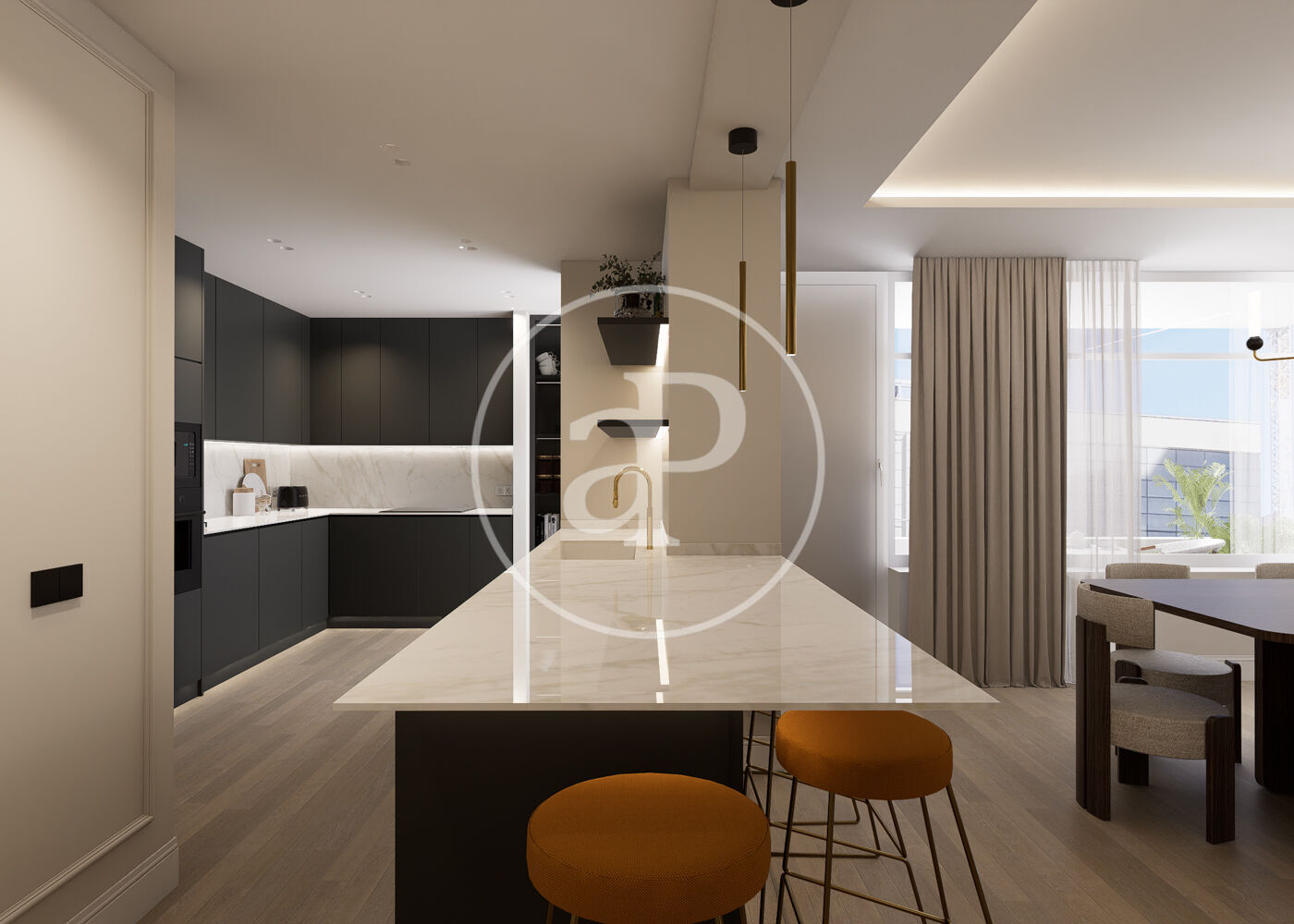 Pis moblat de 161 m2 amb terrassa i vistes a la zona de Castellana, Madrid.