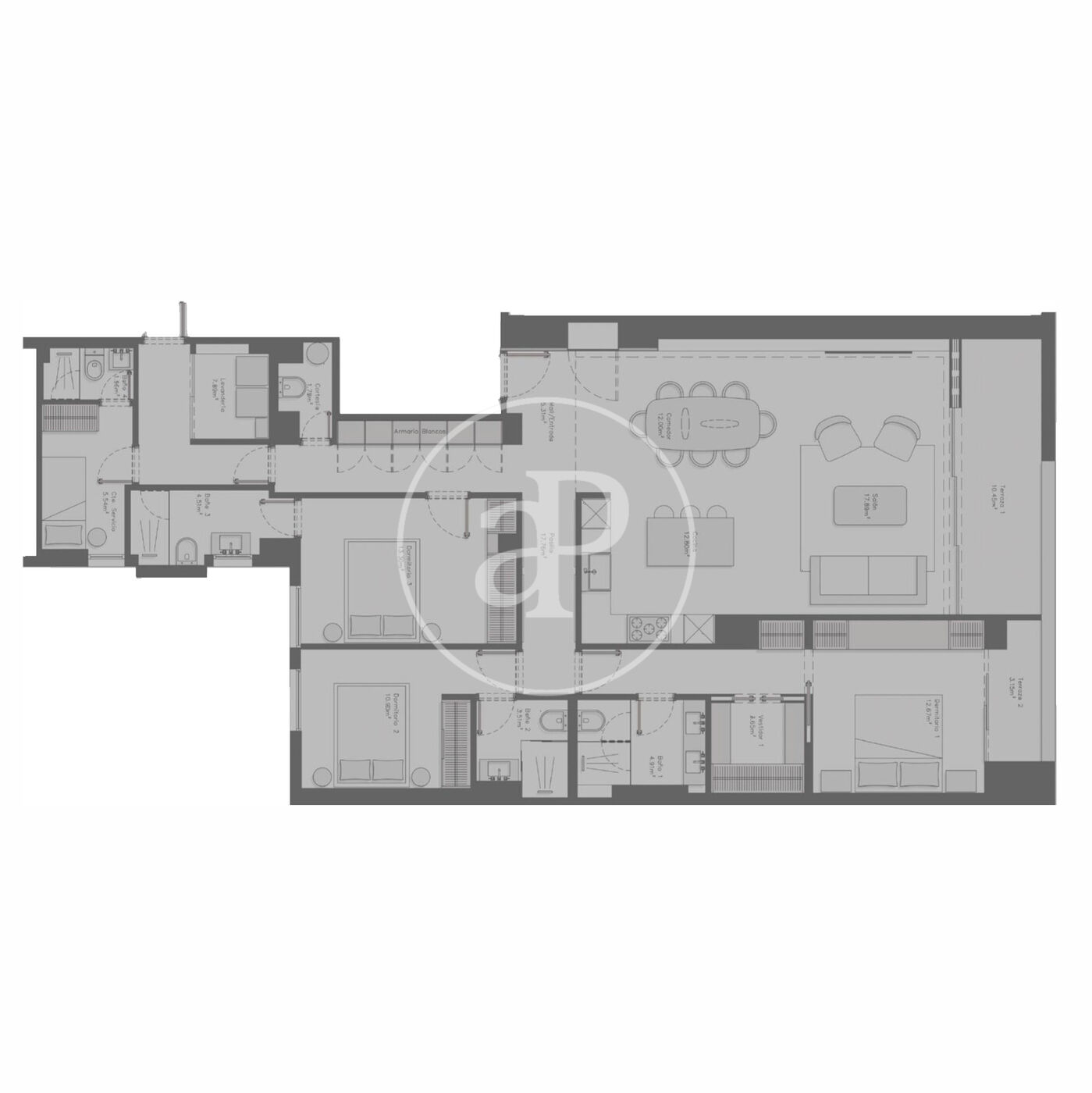 Pis moblat de 193 m2 amb terrassa i vistes a la zona de Castellana, Madrid.