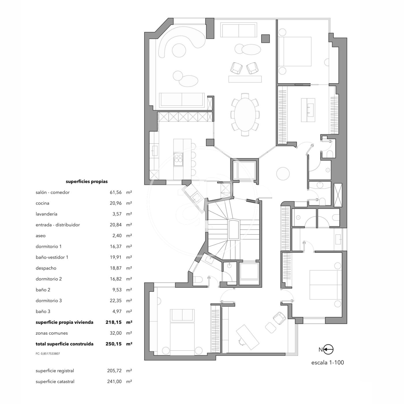 Pis moblat de 241 m2 amb vistes a la zona de Castellana, Madrid.