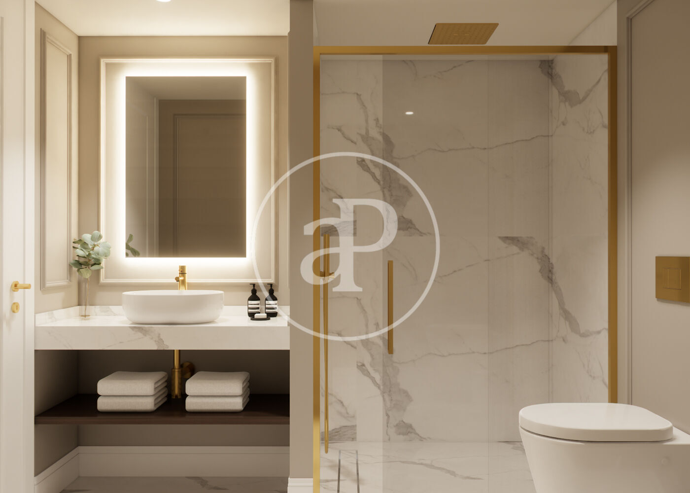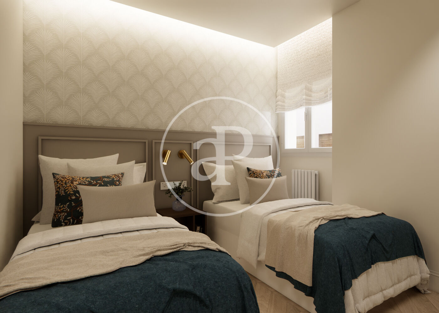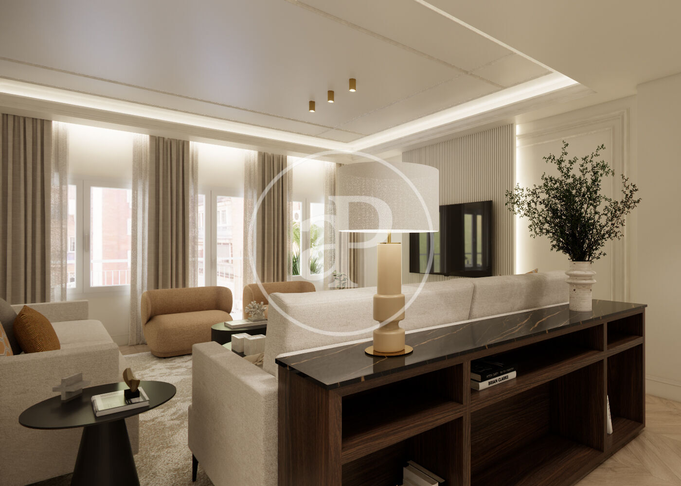 Pis moblat de 245 m2 amb terrassa de 17m2 i vistes a la zona de Castellana, Madrid.