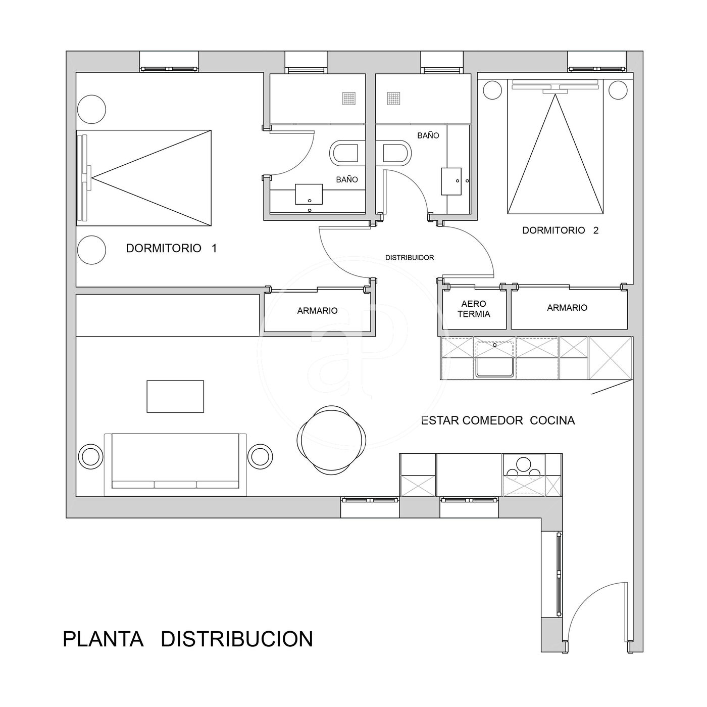 La propietat disposa de 2 dormitoris, 2 banys, aire condicionat, armaris encastats i calefacció.