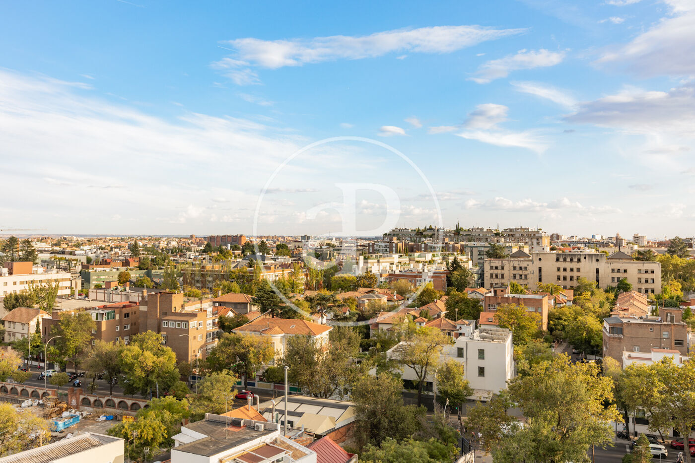 àtic moblat de 82 m2 amb terrassa de 8m2 i vistes a la zona de Castilla, Madrid.