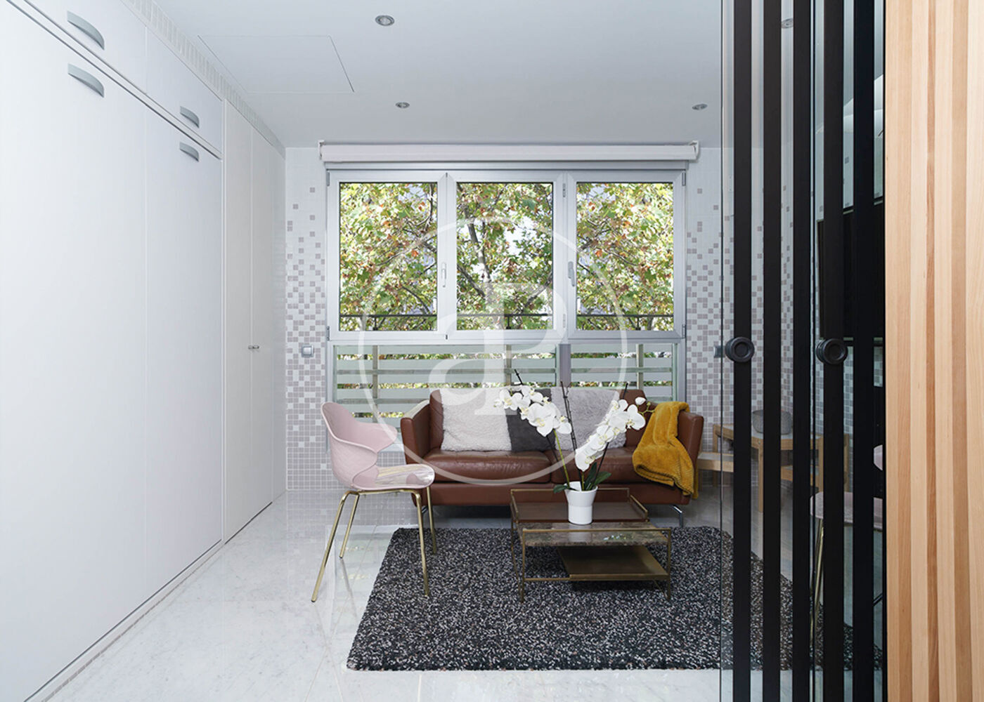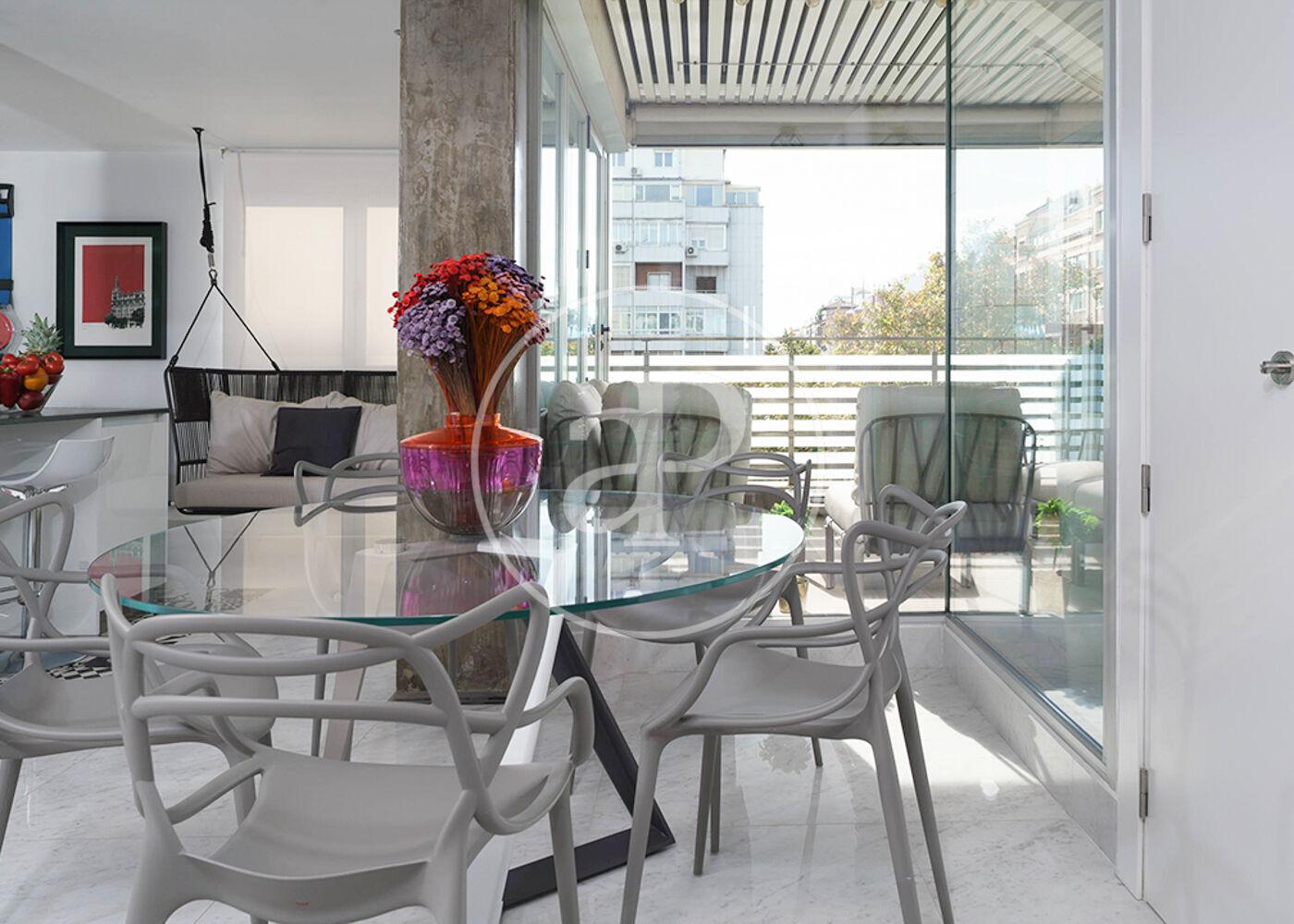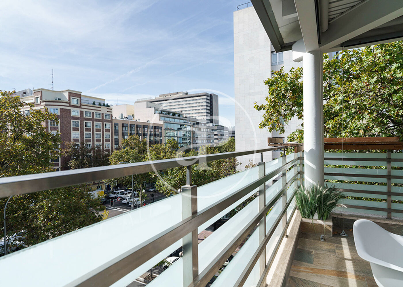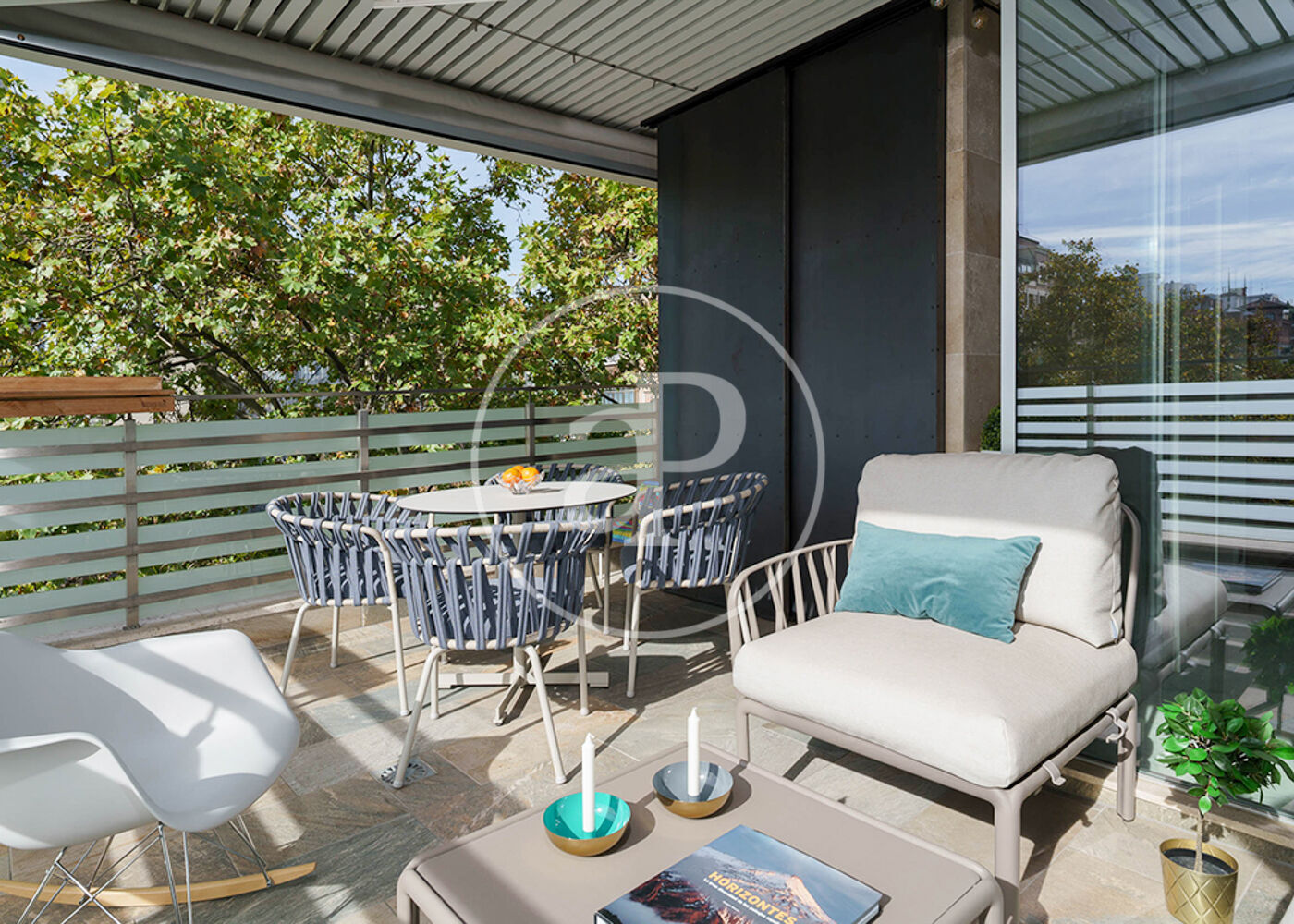 Pis moblat de 80 m2 amb terrassa de 10m2 i vistes a la zona de Ciudad Jardín, Madrid.
