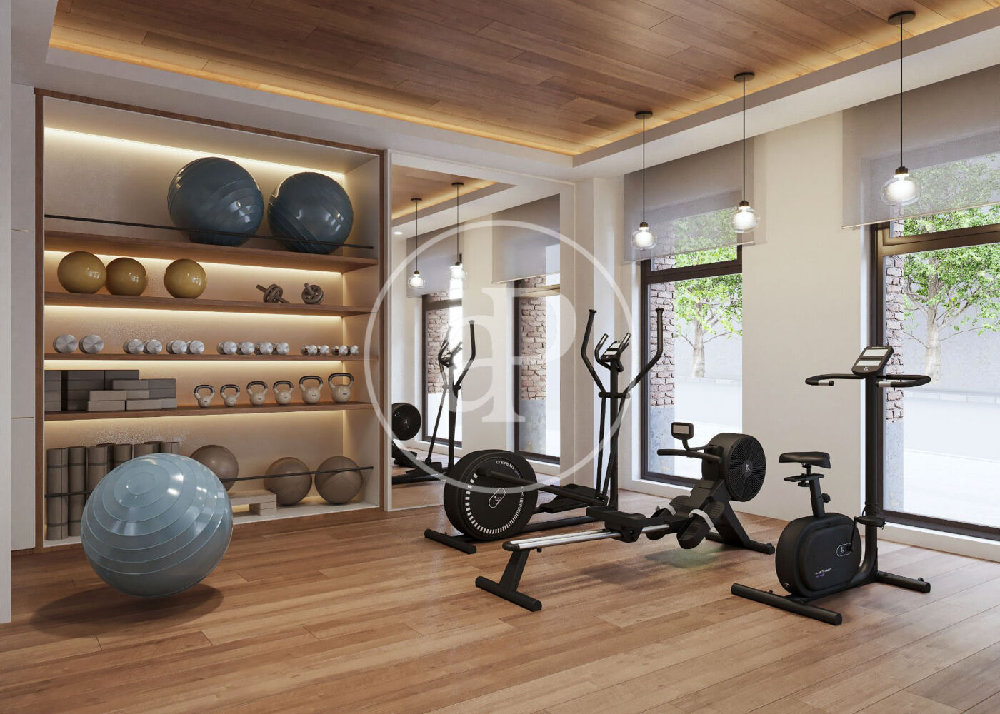 , piscina, gimnàs, plaça d’aparcament, aire condicionat, armaris encastats, bugaderia, balcó, pati posterior, calefacció i consergeria.