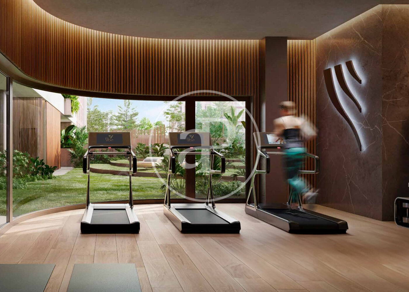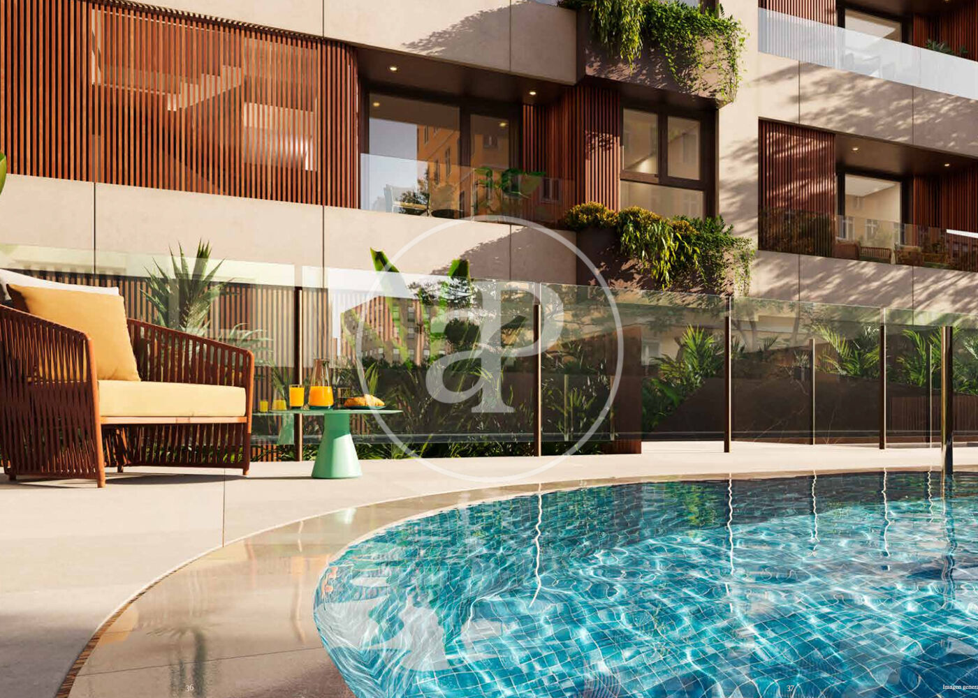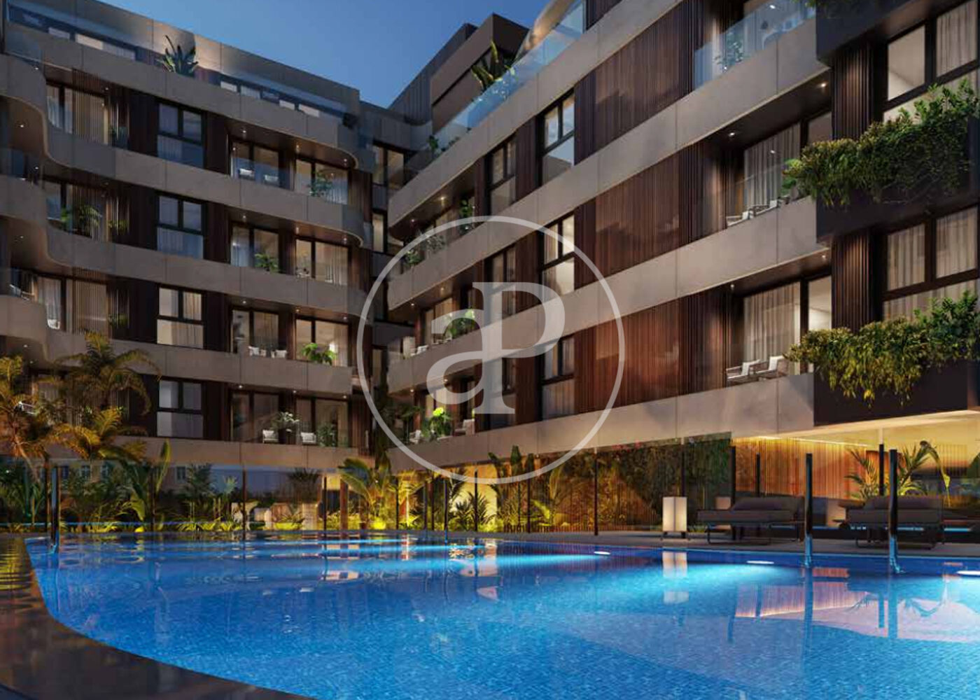 , piscina, gimnàs, plaça d’aparcament, aire condicionat, armaris encastats, balcó, pati posterior, calefacció, consergeria i traster.