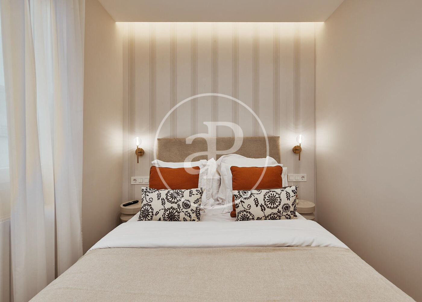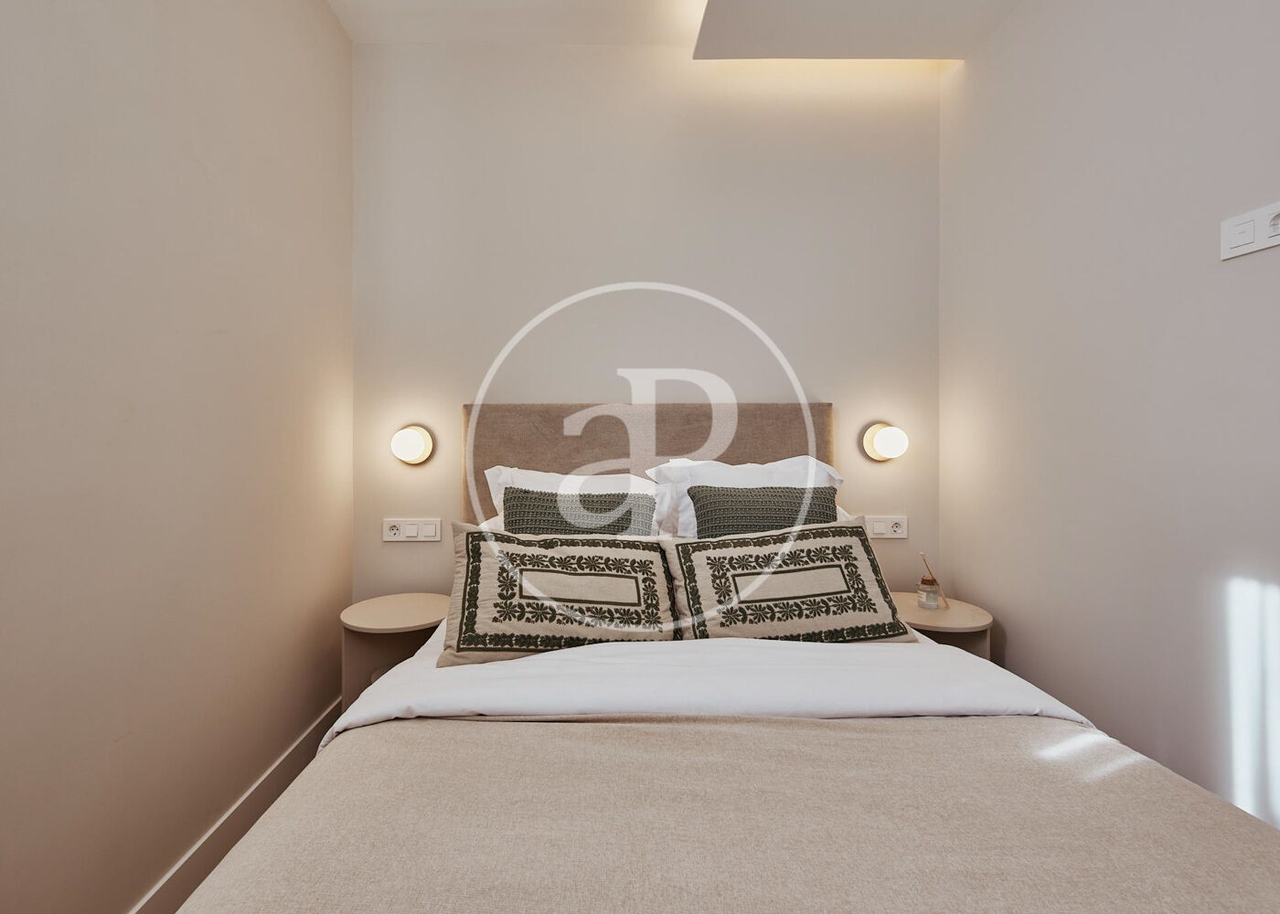 En un dels carrers més bells i senyorials de Ciutat Vella, envoltada de museus i centres culturals, serveis de tota mena i comerços amb glamur, presentem aquesta fantàstica vivenda en una quarta planta real d'una bonica finca clàssica amb ascensor. L'habitatge, reformat íntegrament el 2018 i actualitzat fa pocs mesos, està llest per entrar-hi a viure. La seva superfície, de 124m² + 7m² de balcons segons nota simple, es distribueix de forma lògica i funcional. A l'entrar ens trobem en un còmode vestíbul des del qual a l'esquerra accedim a l'àmplia i lluminosa sala d'estar amb llar de foc i dues sortides a balcons cap al carrer ample i arbrat des d'on gaudir de vistes clares cap al verd i el bonic edifici noucentista del davant; al capdavant de l'entrada trobem la còmoda cuina independent amb gran rebost i zona d'aigua annexa; a la dreta un passadís distribuïdor ens condueix a l'altre costat del pis on trobem tres dormitoris, un doble amb armaris de paret i dos amplis individuals, dos bany complet i un ampli estudi amb sortida a balcó, ideal per gaudir d'un cafè al tranquil pati de poma. La finca compta amb terrat d'ús comunitari des d'on gaudir de fantàstiques vistes i del bon clima de Barcelona i d'un traster per guardar bicicletes a la planta baixa. L'habitatge té instal·lacions renovades, aire condicionat i radiadors, així com fusteria exterior amb doble vidre, garantint un alt nivell de confort i d'eficiència energètica. Destaquen d'aquesta propietat l'amplitud, la lluminositat i la ventilació que caracteritzen totes les estances, la doble orientació que permet una òptima ventilació creuada i la ubicació immillorable. Una propietat ideal per a aquells que busquen una llar còmoda, cèntrica i alhora tranquil·la, en una de les millors zones del nucli antic de Barcelona. Un pis que t'enamorarà des del primer moment! Contacta'ns i programa la teva visita sense compromís.