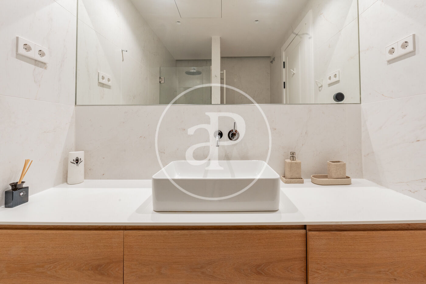 LLOGUER DE LLARGA ESTADA, DISPONIBLE A DESEMBRE Pis de nova construcció a estrenar de 60 m² interiors + 20 m² de terrasses privatives, situat en una de les zones més autèntiques i renovades de Barcelona. L’habitatge destaca per la seva llum natural, el seu disseny modern i la seva excel·lent distribució, pensada per oferir el màxim confort a parelles o a dos professionals que vulguin compartir pis. L’espai principal combina un saló-menjador ampli i acollidor amb cuina oberta integrada en un únic ambient, equipada amb electrodomèstics nous i acabats d’alta qualitat. Els terres de fusta, la fusteria moderna i els materials càlids aporten una sensació de llar molt agradable. El pis disposa de dues habitacions dobles exteriors amb armaris encastats; una d’elles amb bany en suite, a més d’un segon bany complet. Tant el saló com les habitacions tenen sortida directa a una terrassa a peu de pis, perfecta per relaxar-se a l’aire lliure. L’habitatge compta, a més, amb una segona terrassa privativa de 20 m² situada a la planta superior, creant un espai ideal per teletreballar, prendre el sol o rebre visites en un entorn privat. La climatització per aerotèrmia, la domòtica instal·lada (incloent persianes motorizades), la il·luminació LED de baix consum i els tancaments d’alta eficiència garanteixen confort tèrmic i eficiència energètica durant tot l’any. El pis es lliura amb alarma i sistema de seguretat inclosos, aportant la màxima tranquil·litat a l’inquilí. L’edifici, de nova construcció i amb pocs veïns, ofereix un ambient tranquil i privat, i disposa d’ascensor fins a la terrassa superior. Situat a Poble-Sec, un barri que conserva l’autèntic esperit de Barcelona, amb carrers plens de vida local i una àmplia oferta gastronòmica i cultural. La seva proximitat a Montjuïc el converteix en una de les zones més agradables per a qui busca combinar barri, natura i ciutat. L’habitatge està perfectament connectat: a pocs passos de diverses parades de metro i autobús; Parking SABA just al costat; a 15 minuts de l’Aeroport de Barcelona i a 15 minuts caminant de la Plaça Catalunya. A pocs minuts dels jardins de Montjuïc, del MNAC, del Teatre Grec i de zones verdes ideals per desconnectar. Una oportunitat única de viure en un pis de nova construcció amb prestacions d’alt nivell, en una zona cèntrica, ben comunicada i amb una qualitat de vida excepcional.* En compliment de la Llei 12/2023 i la Llei 18/2007 informem que:Índex de R.P.LL: 14,49 € / m2 Respecto a la presente propiedad no existe certificado informativo estatal de referencia de precios de alquiler