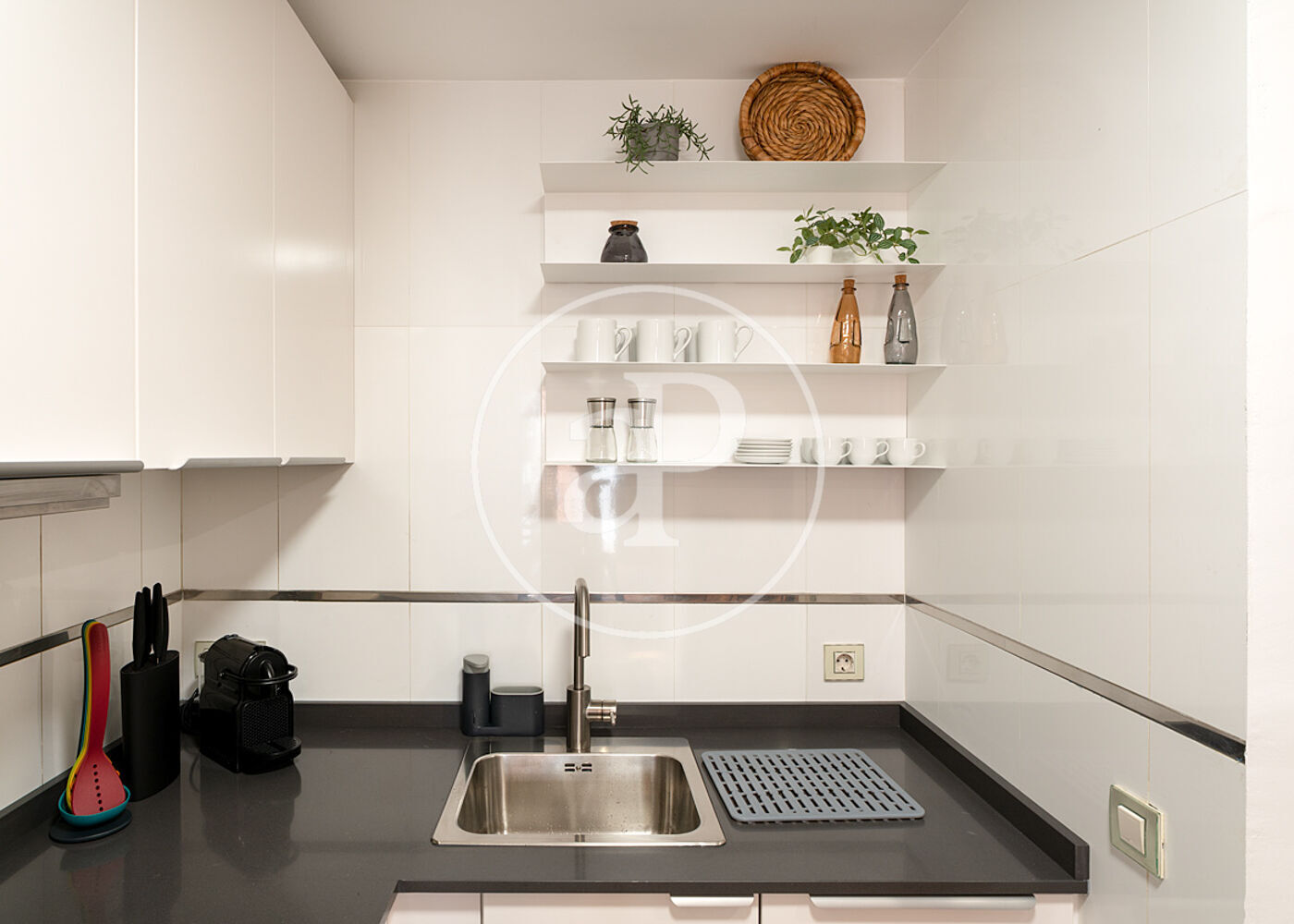 dormitori, 1 bany, piscina, gimnàs, 1 plaça d’aparcament, aire condicionat, armaris encastats, balcó, calefacció i consergeria.