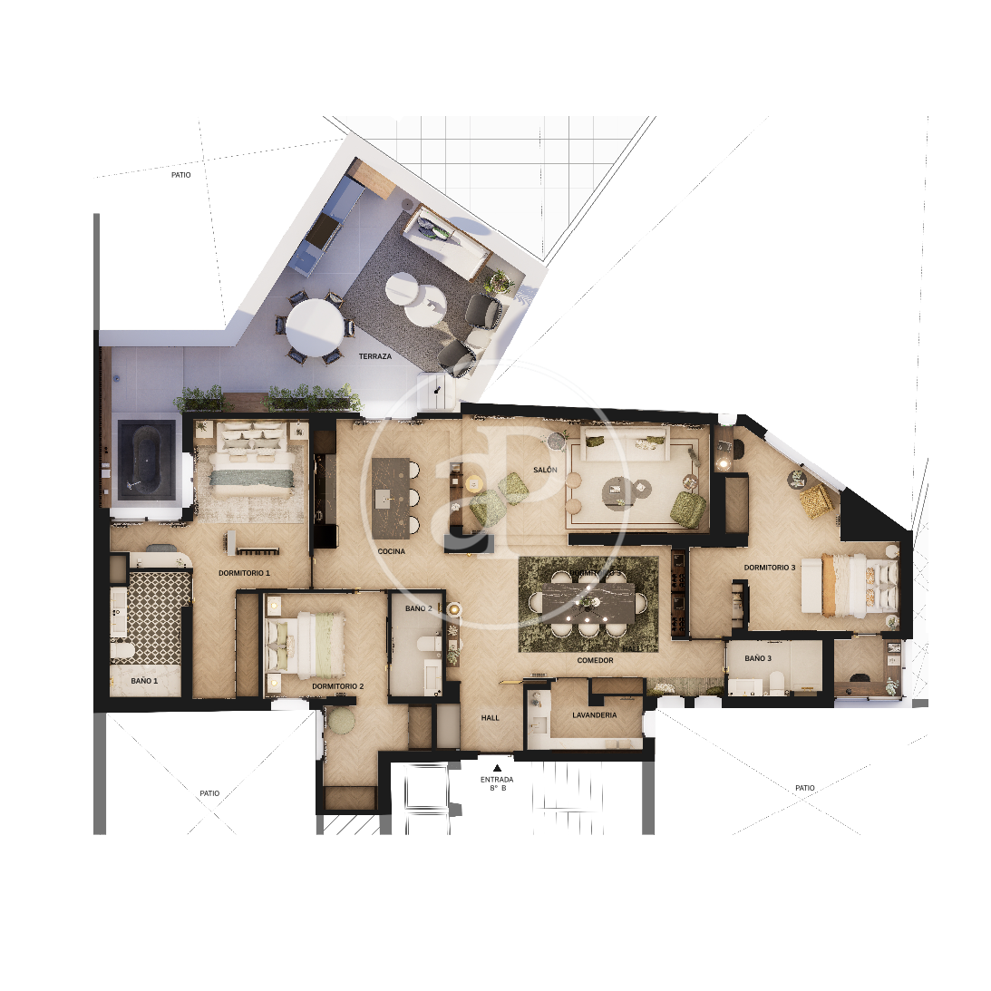 Pis moblat de 177 m2 amb terrassa de 42m2 i vistes a la zona de Goya, Madrid.