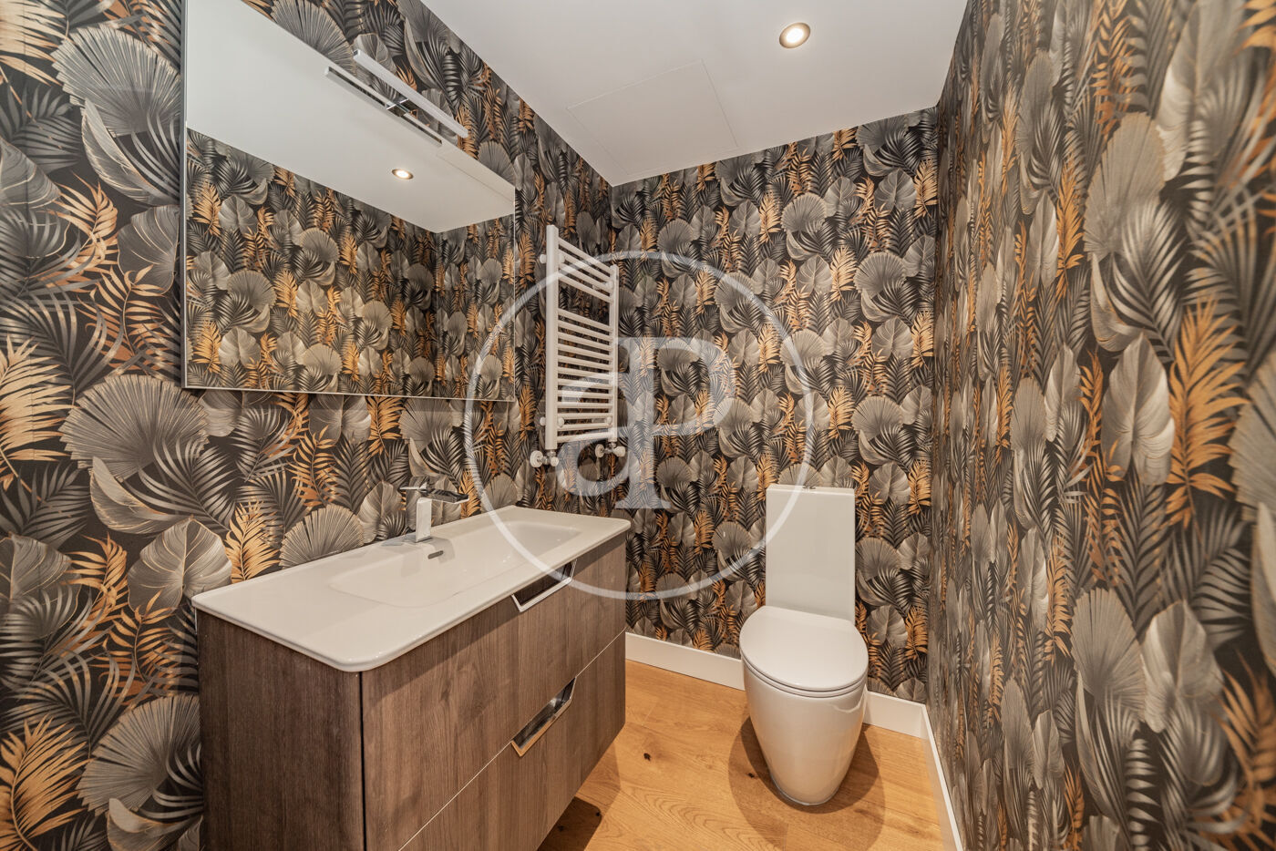 Espectacular casa modernista a la part alta de Sarrià, a Vallvidrera d’Alt, situada en una finca senyorial que data de 1901, obra d’un constructor de l’època, amb un ampli jardí per gaudir de la vida a l’aire lliure. La casa compta amb 370 m² construïts, distribuïts en tres plantes, i una terrassa superior amb vistes excepcionals a Collserola, Barcelona i el mar. L’entrada principal a la finca s’accedeix a través d’unes portes de ferro forjat que donen pas a un camí envoltat d’arbres, arbustos i parterres de flors amb un aire molt mediterrani. A l’esquerra hi ha l’accés al garatge per a dos cotxes, des del qual també s’accedeix directament a l’interior de la casa; a la dreta, una caseta de 30 m² que antigament era un aparcament amb fossat, actualment habilitada com a celler-dispensa, però amb potencial per convertir-se en una encantadora casa de convidats. L’entrada principal de la casa dona pas a un hall-sala d’estar amb xemeneia de marbre, fusteria de fusta de disseny modernista i mobiliari a mida, destacant una preciosa vidriera de colors que dona accés a l’escala central de la casa. A l’esquerra, un ampli menjador amb vistes, finestres modernistes, mobiliari i il·luminació d’època, i arrimadors de rajola modernista; a la dreta, un despatx amb una magnífica biblioteca original. Des de l’escala central s’accedeix a una sala d’estar, a la cuina, un lavabo i al jardí. A la planta superior hi trobem un estudi, un dormitori amb bany i una sala. A la tercera planta, quatre dormitoris i dos banys, un d’ells en suite. Tota la casa conserva el paviment hidràulic original. A l’última planta, una fantàstica terrassa amb vistes panoràmiques a Barcelona i al mar. La ubicació d’aquesta propietat la fa única pel seu valor de patrimoni històric i artístic, emmarcada a la Serra de Collserola, en plena natura i a només 10 minuts del centre de la ciutat.