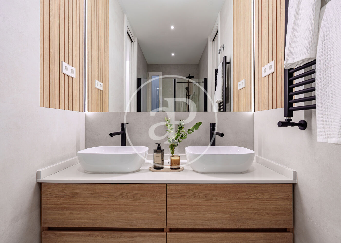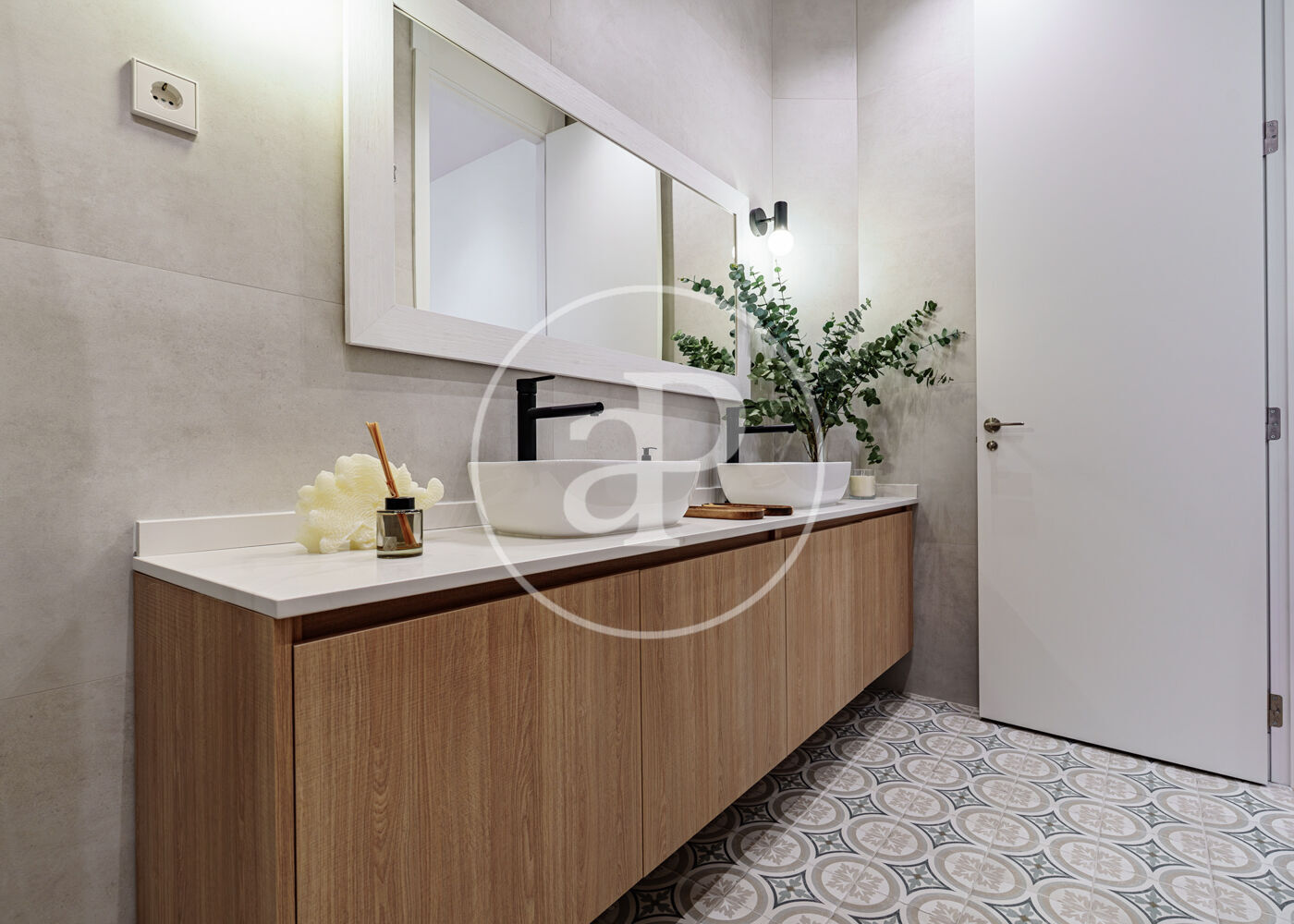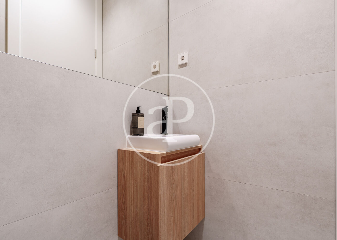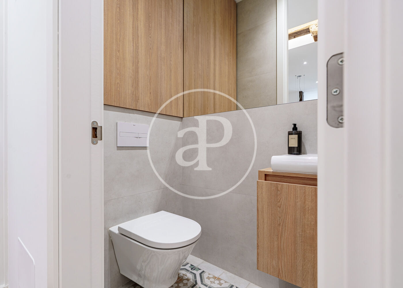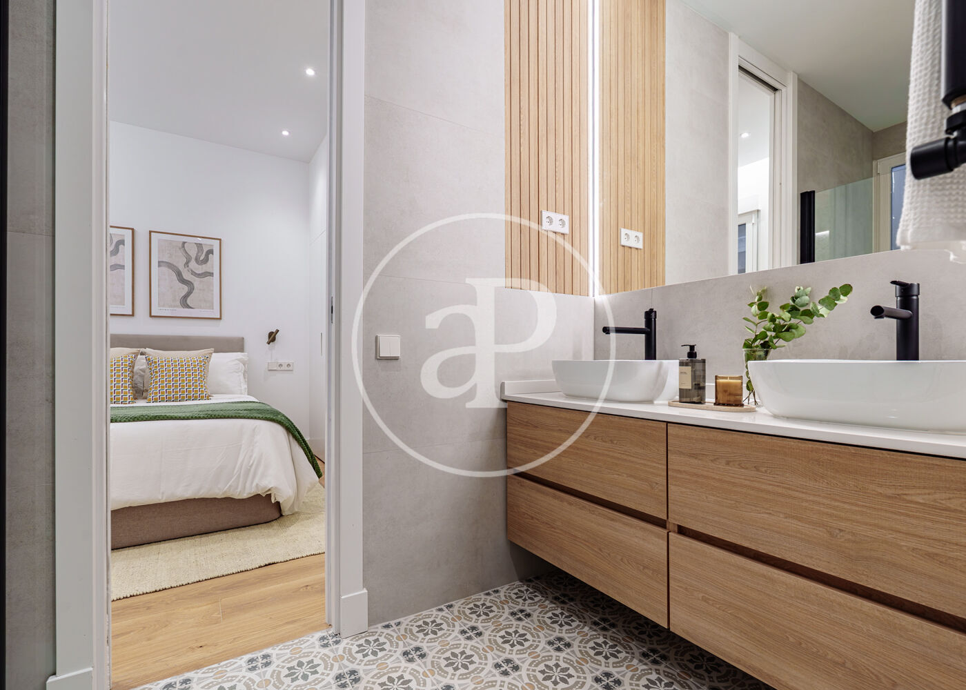 aProperties presenta este exclusiu xalet adossat, completament reformat, situat en una de les zones més cotitzades de l’emblemàtic barri del Cabanyal. Una propietat singular que destaca com una excel·lent oportunitat d’inversió, ja que disposa de llicència turística i s’organitza en dos apartaments independents dins d’una mateixa edificació, cadascun amb accés propi des de carrers diferents, la qual cosa garanteix privacitat i versatilitat d’ús. L’habitatge situat a la planta baixa rep el visitant amb un cuidat espai exterior que alberga una elegant i discreta piscina amb dutxa minimalista, zona de solàrium i una agradable terrassa condicionada com a àrea de relax. A l’interior, es disposa un lluminós saló-menjador amb cuina de concepte obert, un dormitori doble amb un discret espai de treball tipus office i un bany complet amb dutxa, tot dissenyat amb un gust refinat i funcional. El segon apartament, amb accés des d’un carrer paral·lel —un dels més representatius i transitats del Cabanyal—, s’assoleix a través de les tradicionals escales d’aquest històric barri mariner. L’habitatge es distribueix en dos altures. A la planta principal trobem un ampli saló-menjador amb cuina integrada, que s’obri a una generosa terrassa, així com un dormitori doble amb zona office i un bany complet. Unes originals escales condueixen a la planta superior sota coberta, on se situa un segon dormitori doble de grans dimensions, amb múltiples possibilitats d’ús i una elegant paret completa d’armaris encastats. Ambdós habitatges compten amb una decoració acuradament estudiada, que aporta personalitat i sofisticació a cada estança. Disposen, a més, de sistemes d’aire condicionat fred-calor, portes d’accés amb tancament de seguretat automàtic i es venen totalment moblats, llestos per a entrar a viure o per a explotació turística. La propietat es troba en una ubicació immillorable, a tan sols cinc minuts a peu de la platja, envoltada de comerços, oferta gastronòmica, serveis, transport públic i del reconegut Mercat del Cabanyal, un dels més emblemàtics de la ciutat de València. Una inversió excepcional en una de les zones amb major projecció i encant de la ciutat. No deixe passar esta oportunitat i contacte amb nosaltres per a concertar una visita.