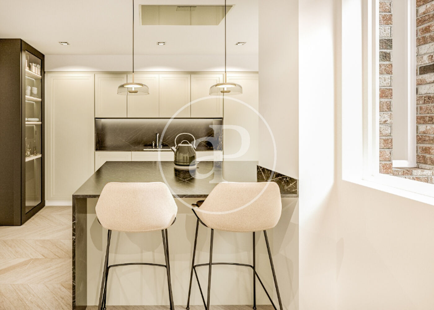 Pis nou de 322 m2 amb terrassa i vistes a la zona de Jerónimos, Madrid.