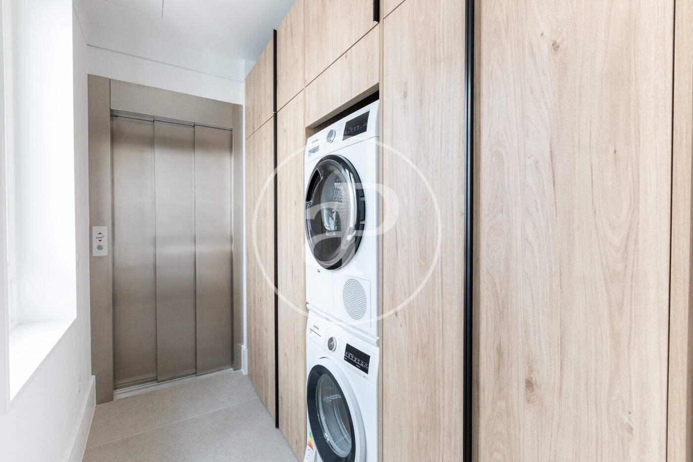 , piscina, gimnàs, plaça d’aparcament, aire condicionat, armaris encastats, bugaderia, balcó, pati posterior, calefacció, consergeria i traster.