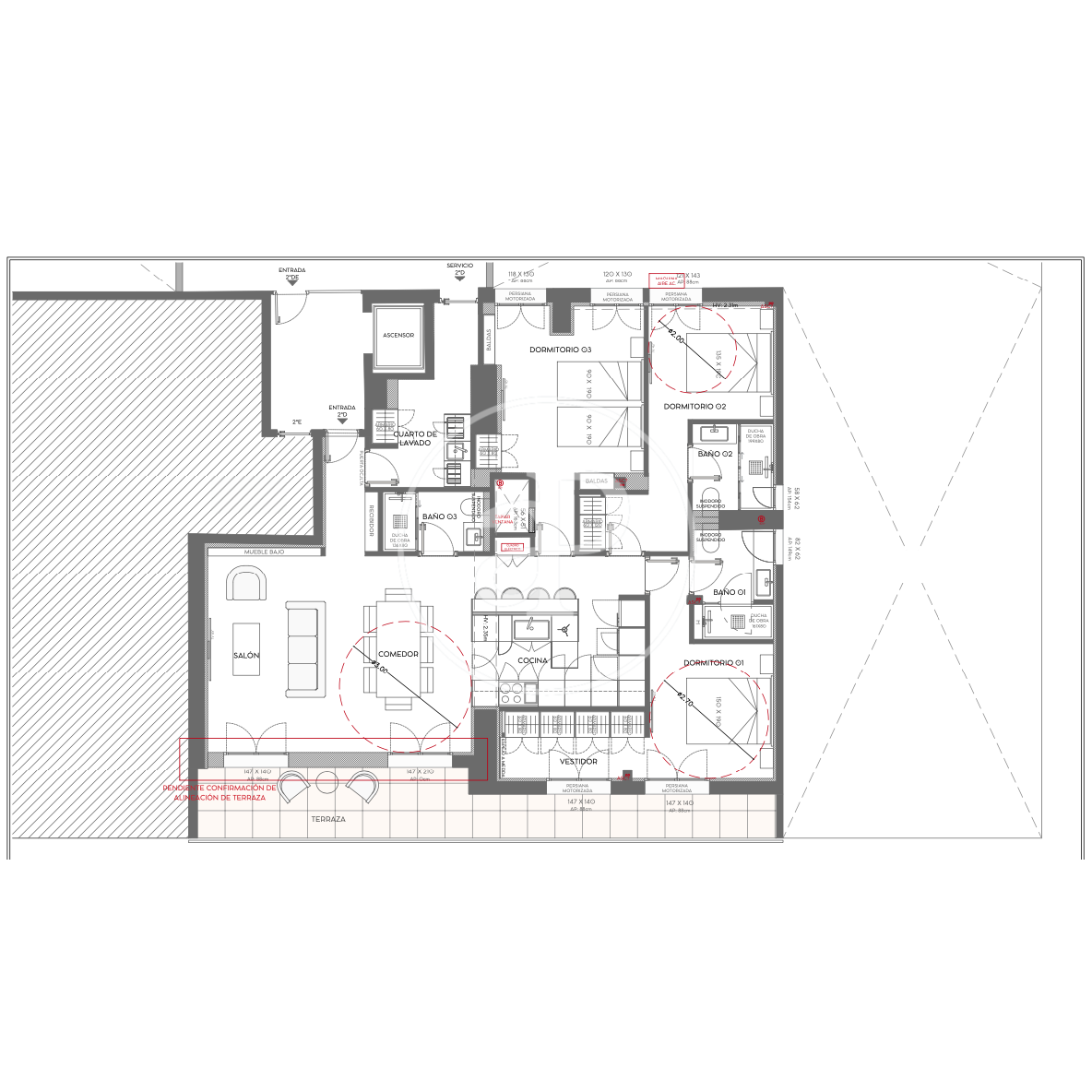 La propietat disposa de 3 dormitoris, 3 banys, aire condicionat, armaris encastats, bugaderia, calefacció i consergeria.