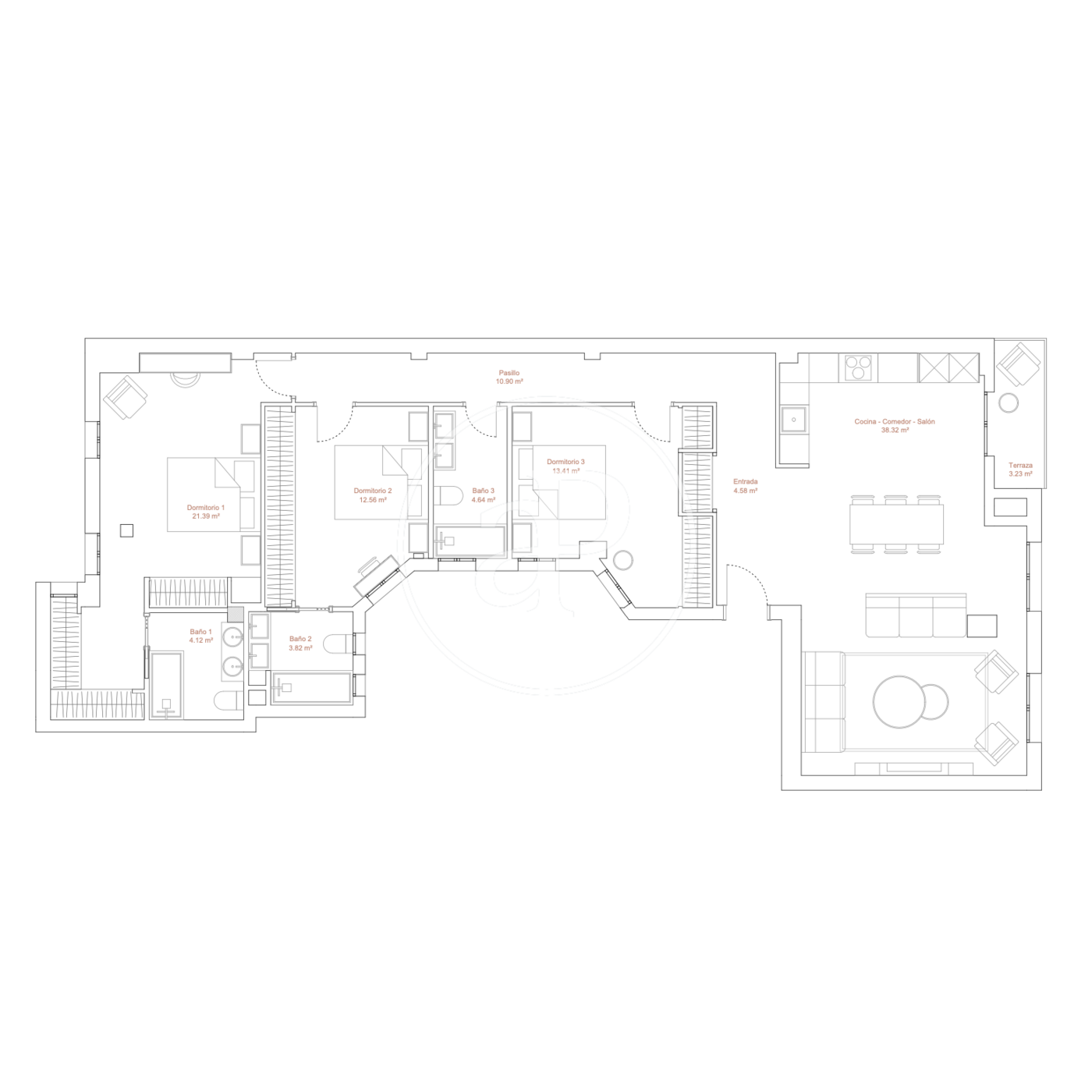 La propietat disposa de 3 dormitoris, 3 banys, aire condicionat, armaris encastats, calefacció, consergeria i traster.