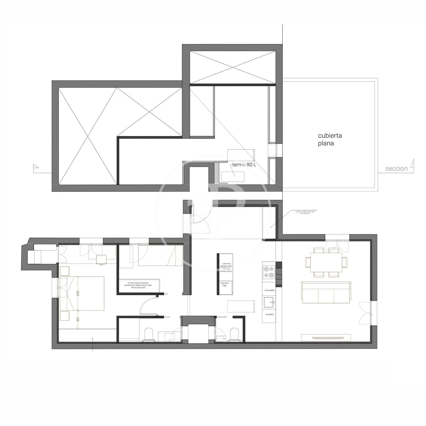 Edifici d'habitatges en l'icònic barri de Sant Antoni - Eixample de Barcelona. Finca clàssica del 1900 totalment renovada amb ascensor i zones comunitàries. Es tracta d'un edifici conformat per planta soterrani, planta baixa, 7 plantes trepitjo i coberta. Un total de 12 apartaments i dos loft que es lliuren totalment moblats i equipats llestos per a entrar a viure.  Un concepte d'apartaments convertibles dotats amb un sistema de panells corredissos que permeten transformar un únic espai en un apartament de dos dormitoris dobles en suite amb llits ocultables en els armaris a mesura, que van d'un extrem a un altre de l'apartament. El nucli central conté la cuina i el bany. La cuina està totalment equipada amb electrodomèstics integrats (rentavaixelles, forn, forn-microones, cafetera i frigorífic), griferia zucchetti i placa de cocció marca porcelanosa; el bany està dividit en tres peces independents amb accés doble des de cada dormitori. L'apartament que presentem disposa de 54m2 construïts i possibilitat d'1 o 2 dormitoris i sortida a balcó orientat a pati de poma. Paviments continus, emmarcats de marbre, revestiment ceràmic artesanal, placa de cocció porcelanosa, aixeteria encastada, dutxa efecte pluja i armaris a mesura.  Les zones comunes de l’edifici disposen d’aparcament per a bicicletes, celler de vins, espai de coworking, gimnàs, bugaderia i terrassa comunitària amb dutxes exteriors, lounge i barra social.