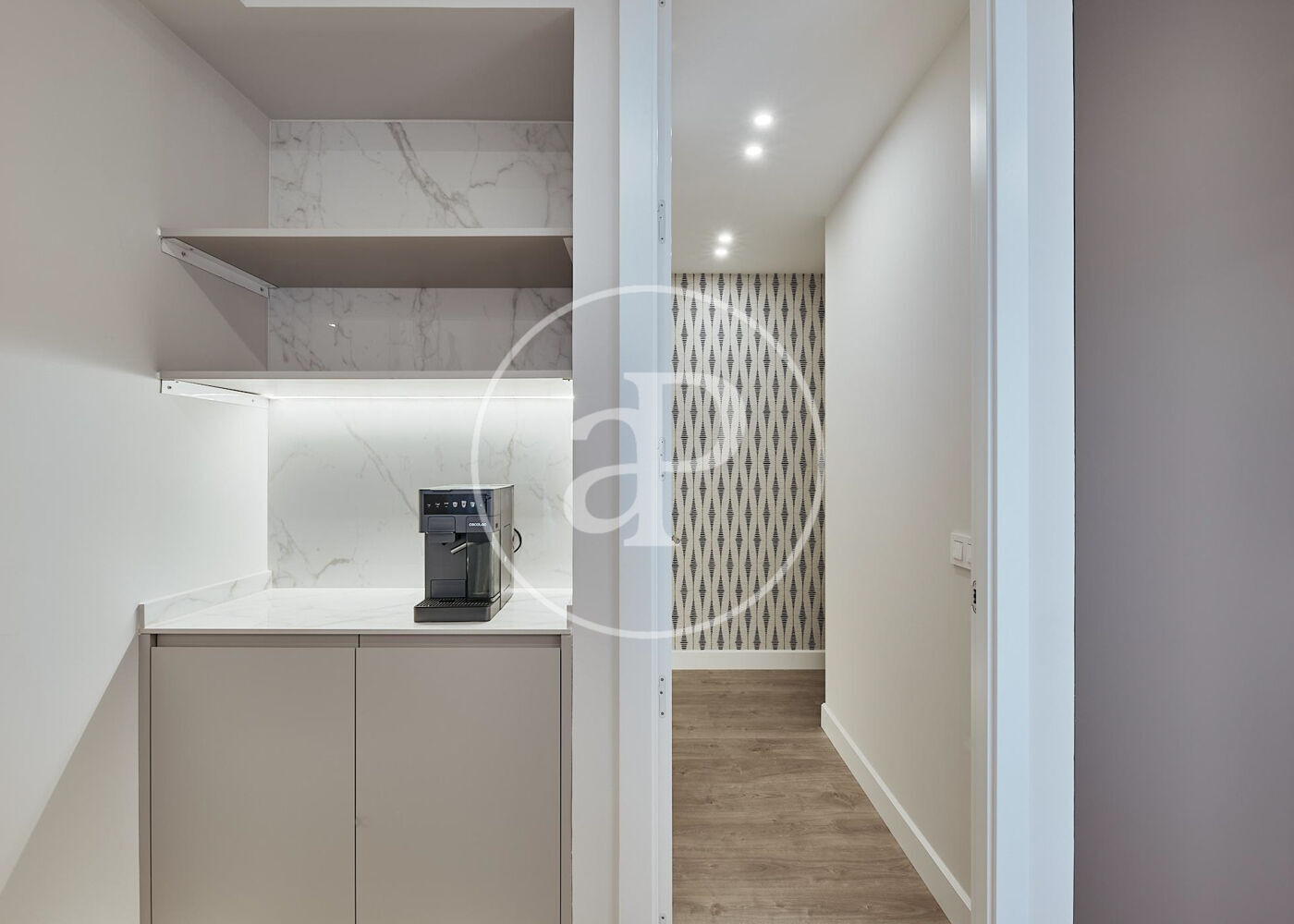Fantàstic pis de 99 m² construïts, situat en una de les zones més cobejades de Barcelona: el prestigiós carrer Muntaner, a només uns passos del cèlebre Mercat de Galvany i de l’Avinguda Diagonal. A menys d’un minut de la parada de Ferrocarrils de Muntaner. L’habitatge ha estat íntegrament reformat i es presenta llest per estrenar, amb una distribució pràctica i molt lluminosa. En accedir-hi, ens rep la zona de dia, composta per un ampli saló-menjador amb sortida directa a la terrassa, amb vistes clares al carrer Muntaner. Un espai obert i ple de llum natural, ideal per gaudir en família o amb amics. La cuina, dissenyada a mida, disposa de ventilació natural i està equipada amb electrodomèstics d’alta gamma. La zona de nit ofereix dues habitacions dobles: la principal, exterior i amb accés a la terrassa, al costat d’un bany complet; i la segona, en suite, amb el seu propi bany privat. L’apartament combina elegància i confort, amb terres de parquet, sistema d’aire condicionat tipus split, calefacció per radiadors, portes lacades i fusteria d’alumini que garanteix un excel·lent aïllament tèrmic i acústic. Els mobles i els electrodomèstics estan inclosos en el preu. La finca clàssica es troba en un entorn residencial consolidat, amb tota mena de serveis, comerços i excel·lents connexions de transport. A més, als voltants hi ha nombroses places d’aparcament disponibles. Una oportunitat única per a aquells que busquin una llar moderna i elegant, llesta per entrar a viure al cor de Barcelona. T’encantarà! Vine a veure’l amb aProperties. La finalitat del contracte és temporal.* En compliment de la Llei 12/2023 i la Llei 18/2007 informem que:Índex de R.P.LL: 12,74 € / m2 Preu de referència estatal 1.427,00 €