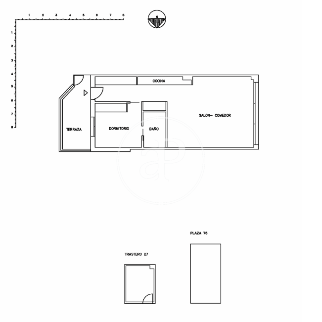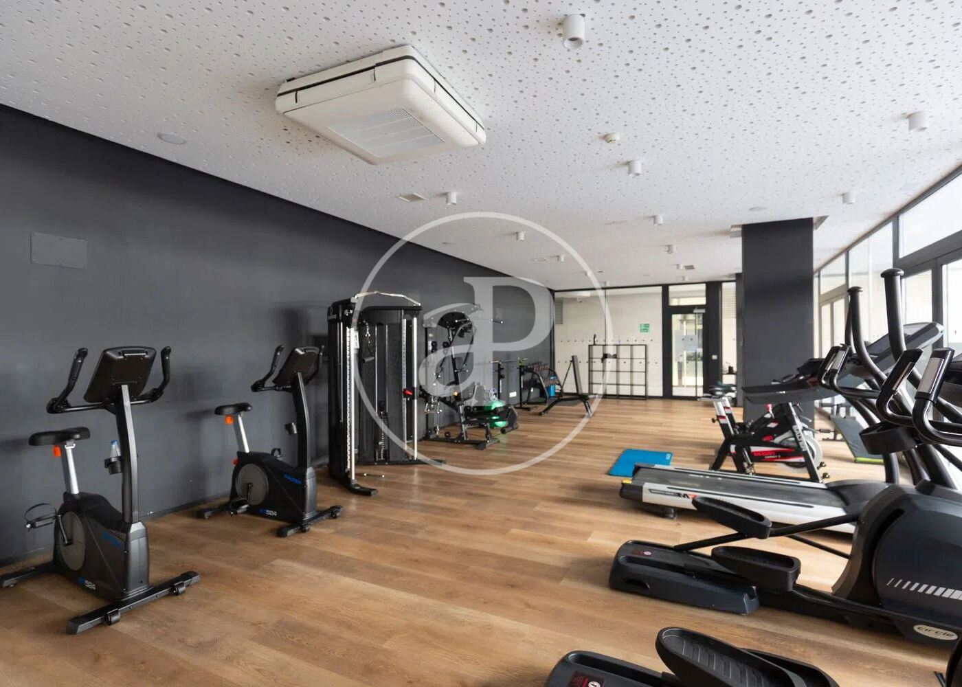 dormitori, 1 bany, piscina, gimnàs, plaça d’aparcament, aire condicionat, pati posterior, calefacció, consergeria i traster.