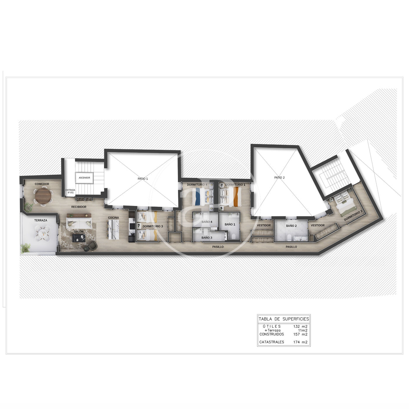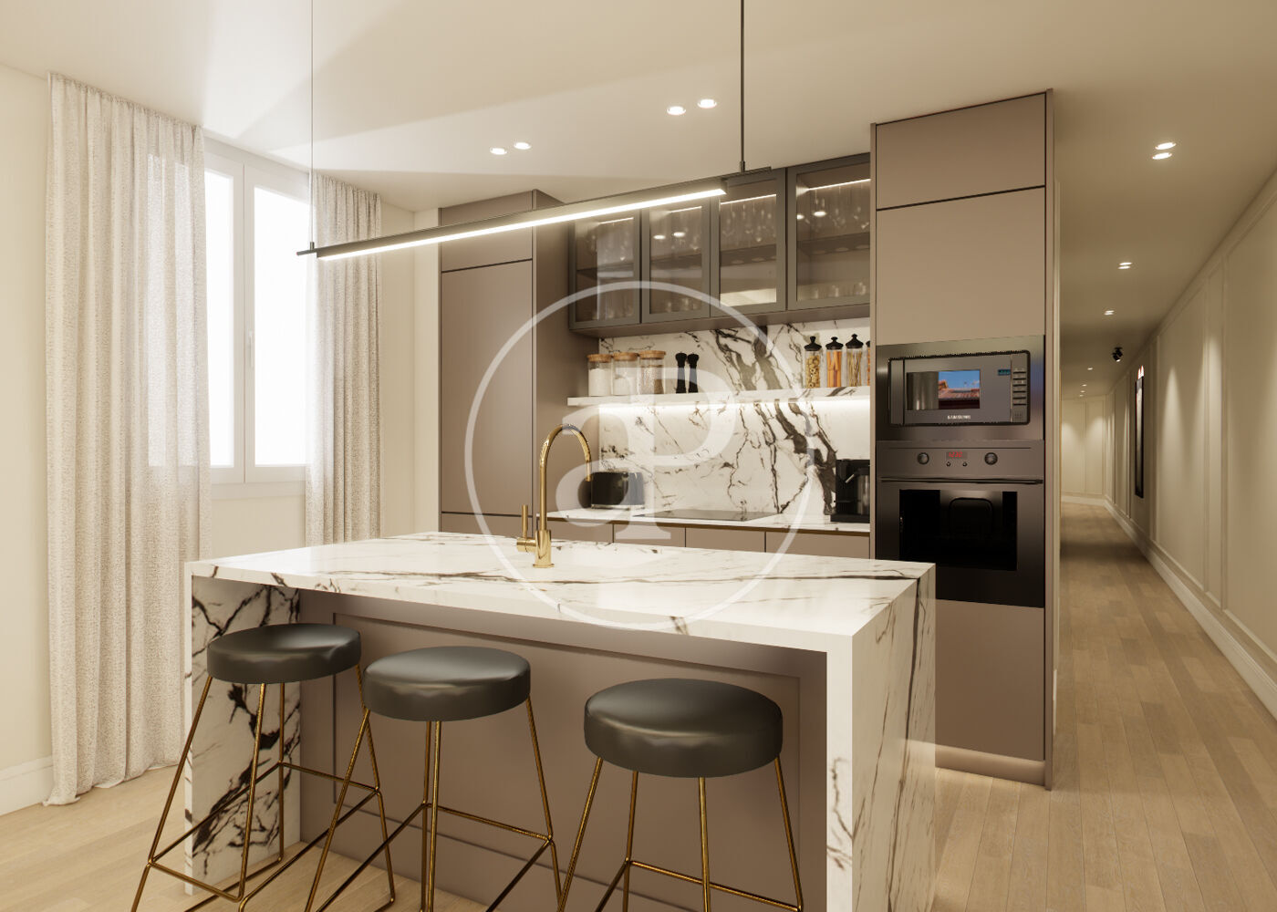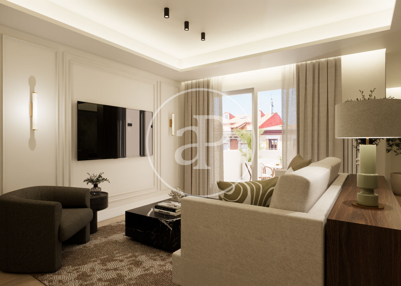 Pis moblat de 174 m2 amb terrassa de 300m2 i vistes a la zona de Palacio, Madrid.