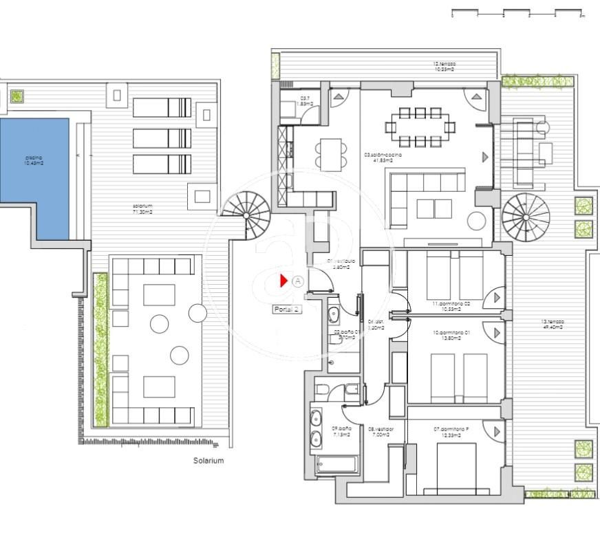 La propietat disposa de 3 dormitoris, 2 banys, piscina, 2 places d'aparcament, aire condicionat, armaris encastats, bugaderia, pati posterior, calefacció, consergeria i traster.