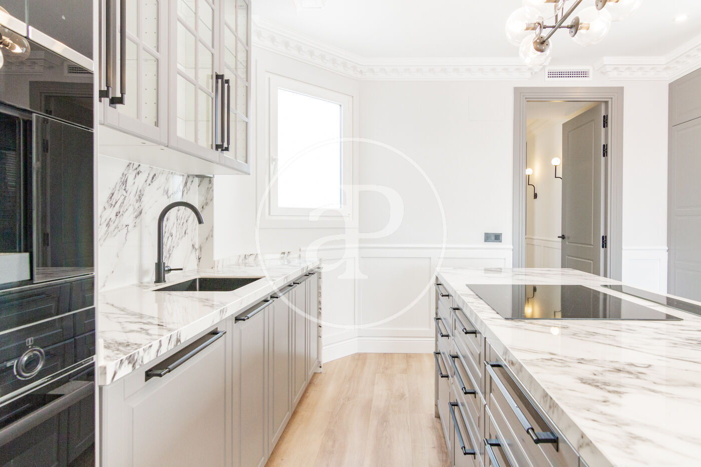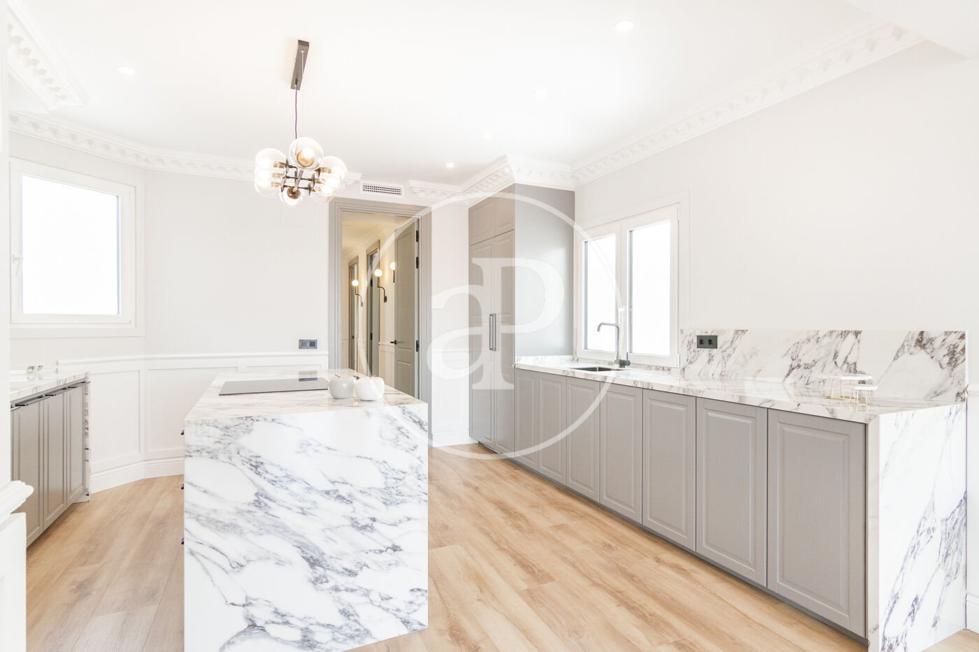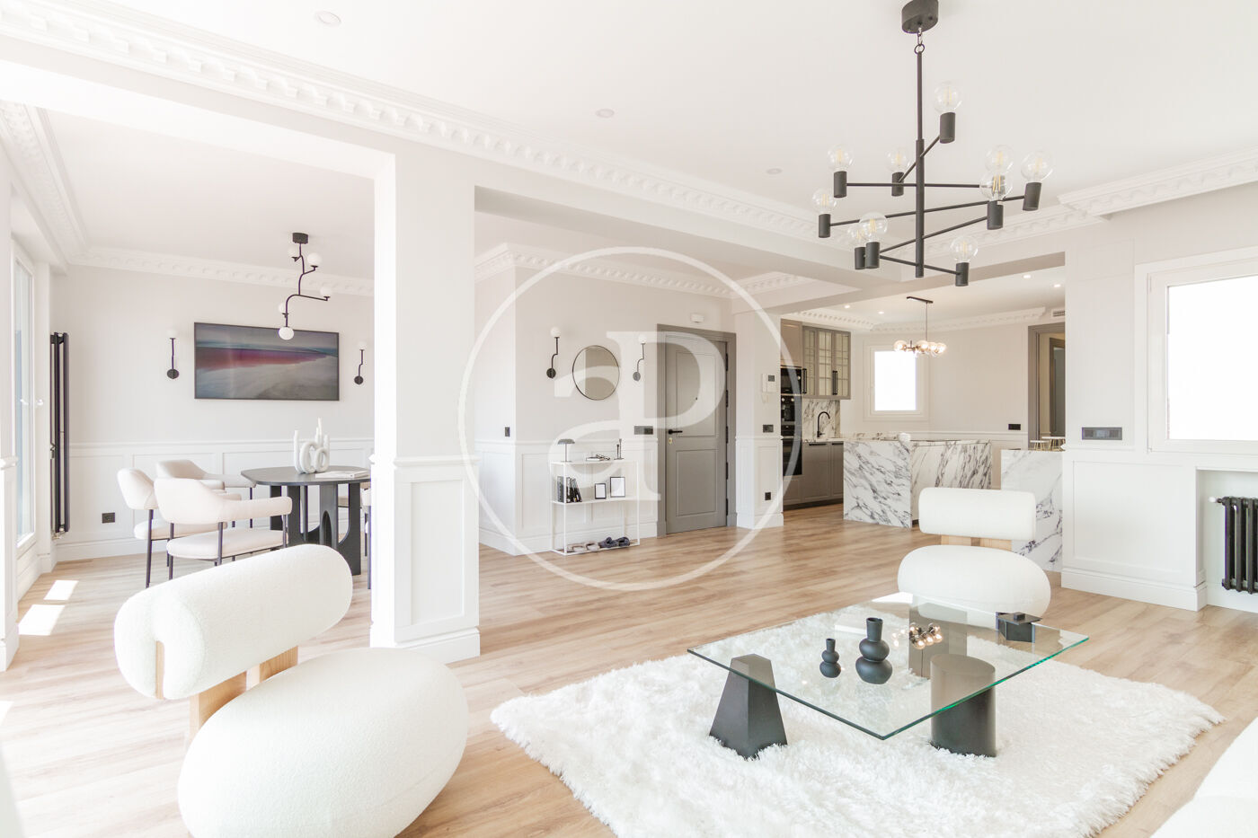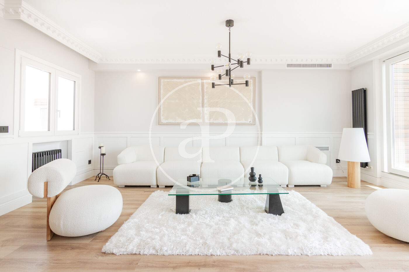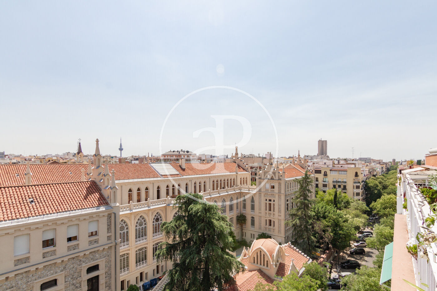 àtic moblat de 180 m2 amb terrassa de 24m2 i vistes a la zona de Recoletos, Madrid.