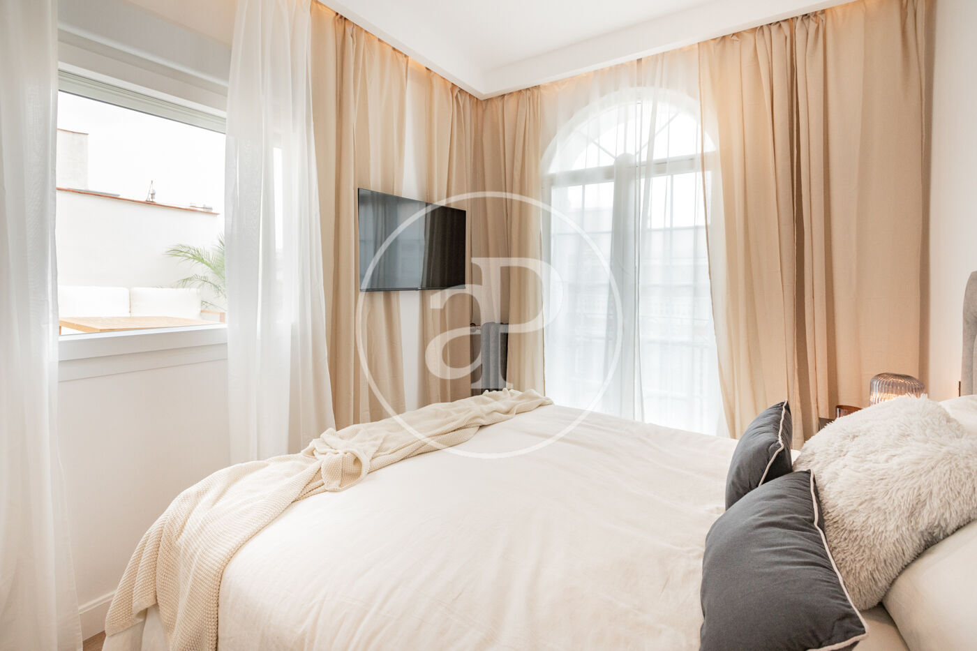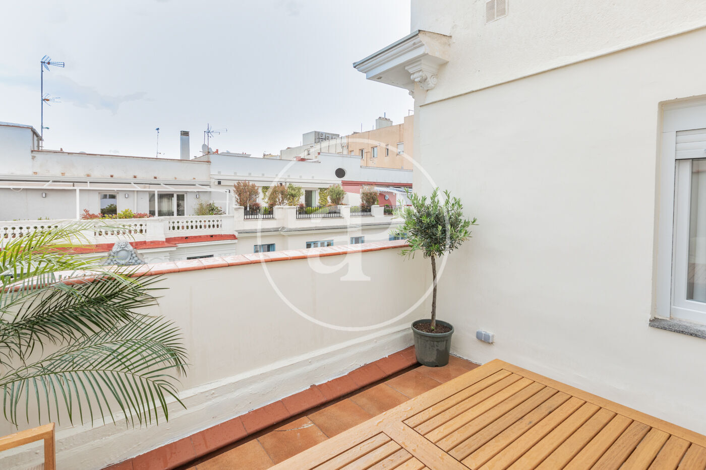 àtic moblat de 84 m2 amb terrassa de 14m2 i vistes a la zona de Recoletos, Madrid.