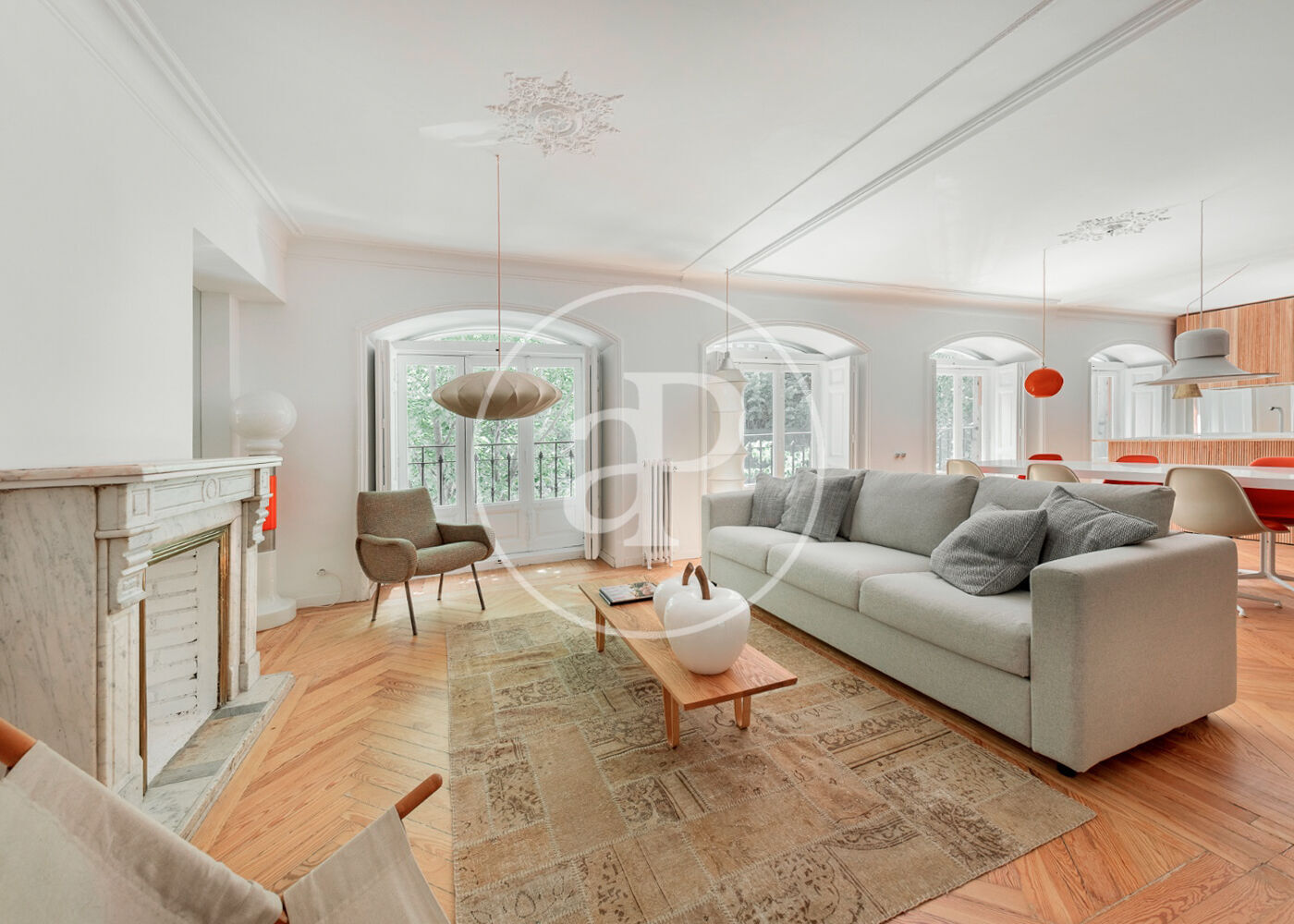 Pis moblat de 200 m2 amb vistes a la zona de Recoletos, Madrid.