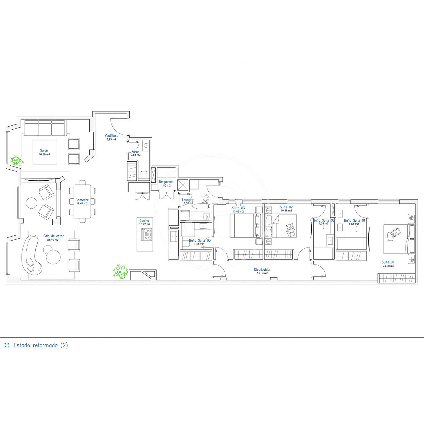Pis moblat de 212 m2 amb vistes a la zona de Recoletos, Madrid.