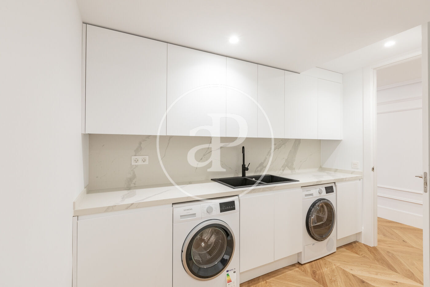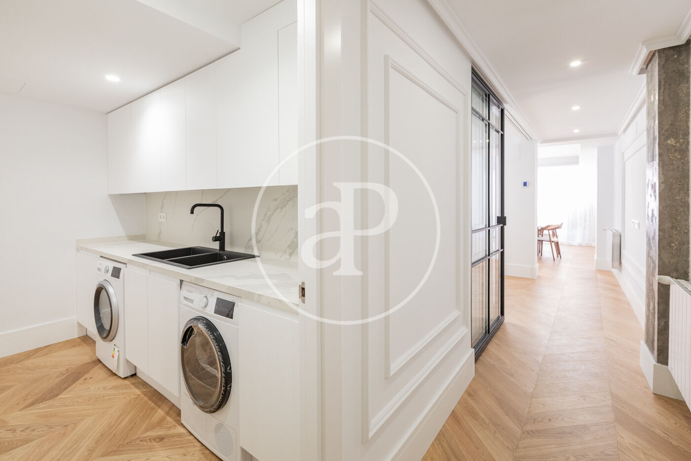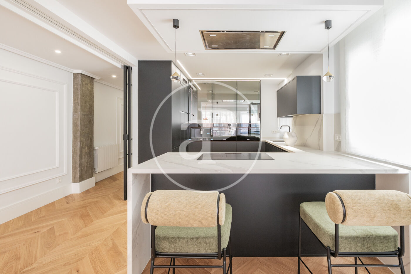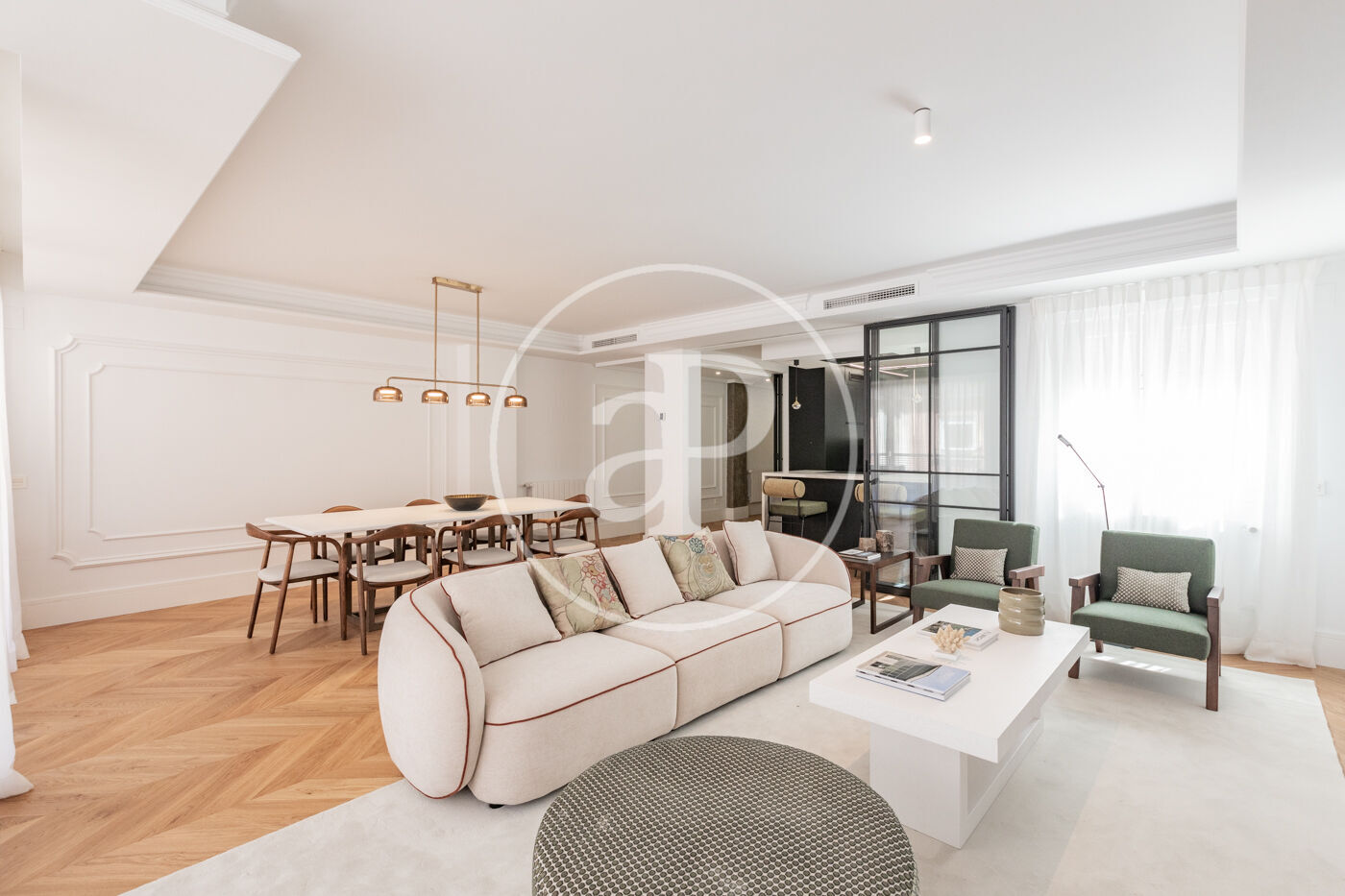 Pis moblat de 250 m2 amb terrassa de 6m2 i vistes a la zona de Recoletos, Madrid.