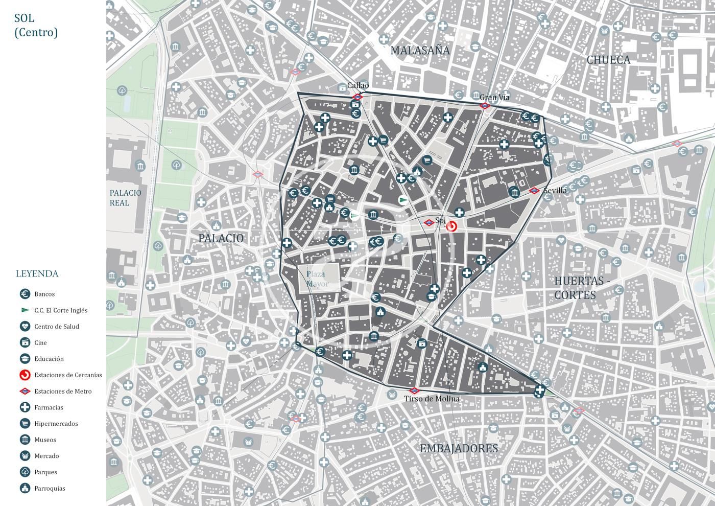 El barri de Sol és probablement el més visitat de Madrid. L’afluència de turistes internacionals  superen cada any els 4 milions de persones. La plaza de Sol és un important centre de trobades, passeig i compres, i també d’exhibició de nombrosos artistes del carrer. En aquest barri trobem el carrer Preciados, un dels més cars d’Espanya. Aquí trobarem les famoses marques comercials i multitud de restaurants de tot tipus.