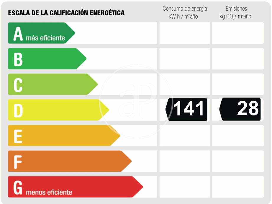 Més eficient Menys eficient Qualificació energètica Consum energia Kw h/m² any Emissions Co/m² any 141.00 28.00