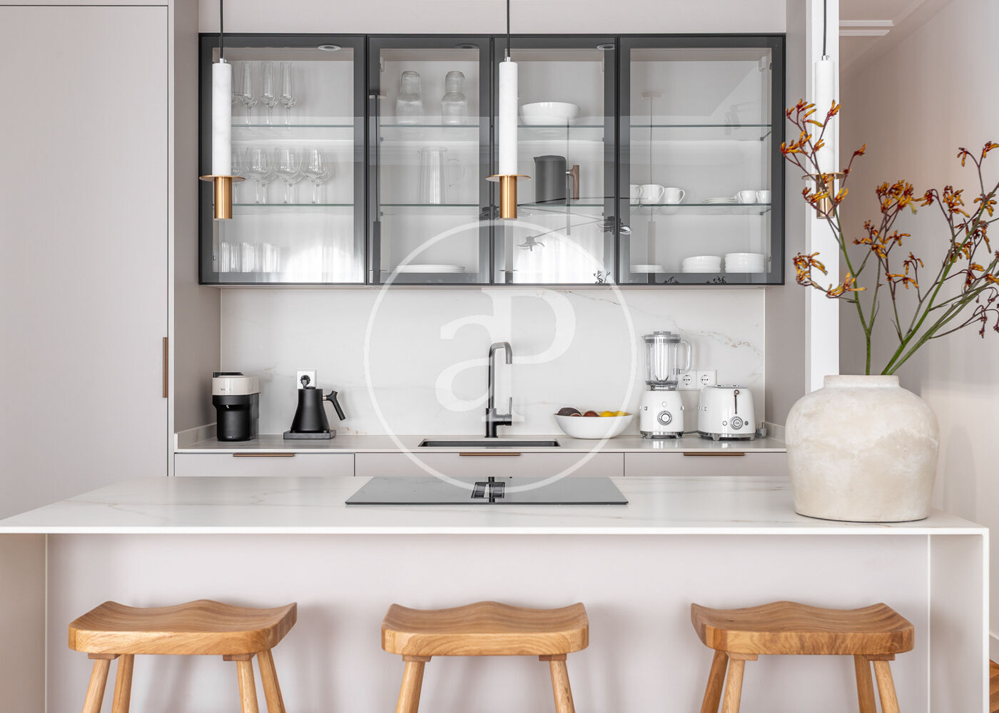 Al Passeig Marítim de Palma es troba aquest espectacular pis de 160 m², recentment reformat amb un estil modern i elegant que enamora a primera vista. L’habitatge destaca per la seva amplitud, lluminositat i una terrassa de 20 m² des d’on es gaudeixen unes vistes privilegiades al mar i al conegut Club Nàutic “Club de Mar”, creant un espai perfecte per relaxar-se i compartir moments únics. La sala d’estar-menjador és àmplia i acollidora, amb una llar de foc elèctrica que aporta calidesa i un toc contemporani. Des d’aquí s’accedeix directament a la terrassa, fet que permet gaudir de la llum natural i de l’encant del Mediterrani en tot moment. La cuina, en tons verds suaus, combina funcionalitat i estètica; és independent però oberta a la sala per oferir més comoditat. Està equipada amb electrodomèstics d’alta gamma, vinoteca, nevera amb dispensador d’aigua i disposa d’espai per a una zona d’esmorzar. A més, compta amb una pràctica bugaderia amb rentadora i assecadora. Un lavabo de cortesia amb un original paper pintat en tons blaus afegeix un toc distintiu i elegant. A través d’un passadís amb armaris encastats s’accedeix a la zona de nit, on trobem tres habitacions dobles, totes amb armaris encastats i estors, i dos banys complets amb acabats moderns en negre. Un d’ells és en suite i compta amb una còmoda dutxa doble. Entre les seves característiques destaquen la calefacció de gas, aire condicionat fred-calor per conductes, finestres amb doble vidre, sistema d’osmosi i descalcificador, així com detalls pensats per al confort, com la vinoteca de la cuina. L’habitatge inclou dues places d’aparcament al mateix edifici i ofereix piscina comunitària per gaudir del bon temps. S’accepten animals de companyia petits. Les despeses de comunitat i l’IBI estan incloses en el preu del lloguer; la resta de subministraments aniran a càrrec de l’arrendatari. Aquest pis és la combinació perfecta entre disseny, comoditat i una ubicació privilegiada davant la mar. Una oportunitat única per viure l’estil de vida mediterrani en una de les zones més exclusives de Palma. T’hi imagines vivint? Esperam la teva trucada.