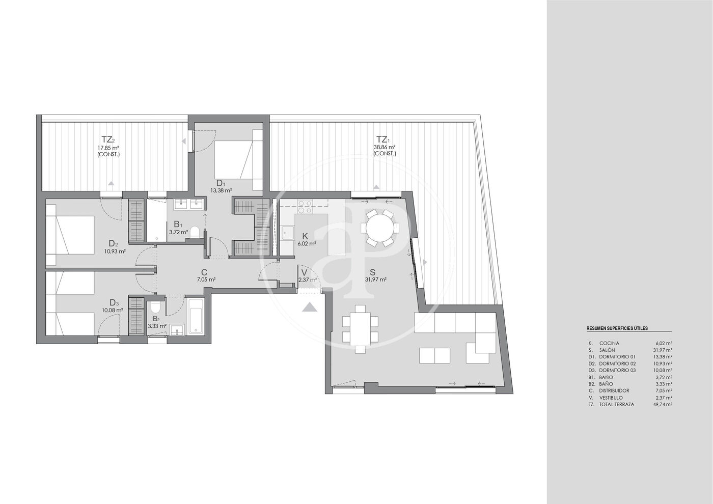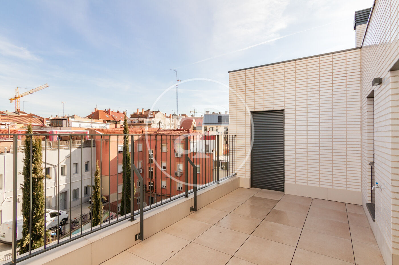àtic nou de 149 m2 amb terrassa a la zona de Valdeacederas, Madrid.