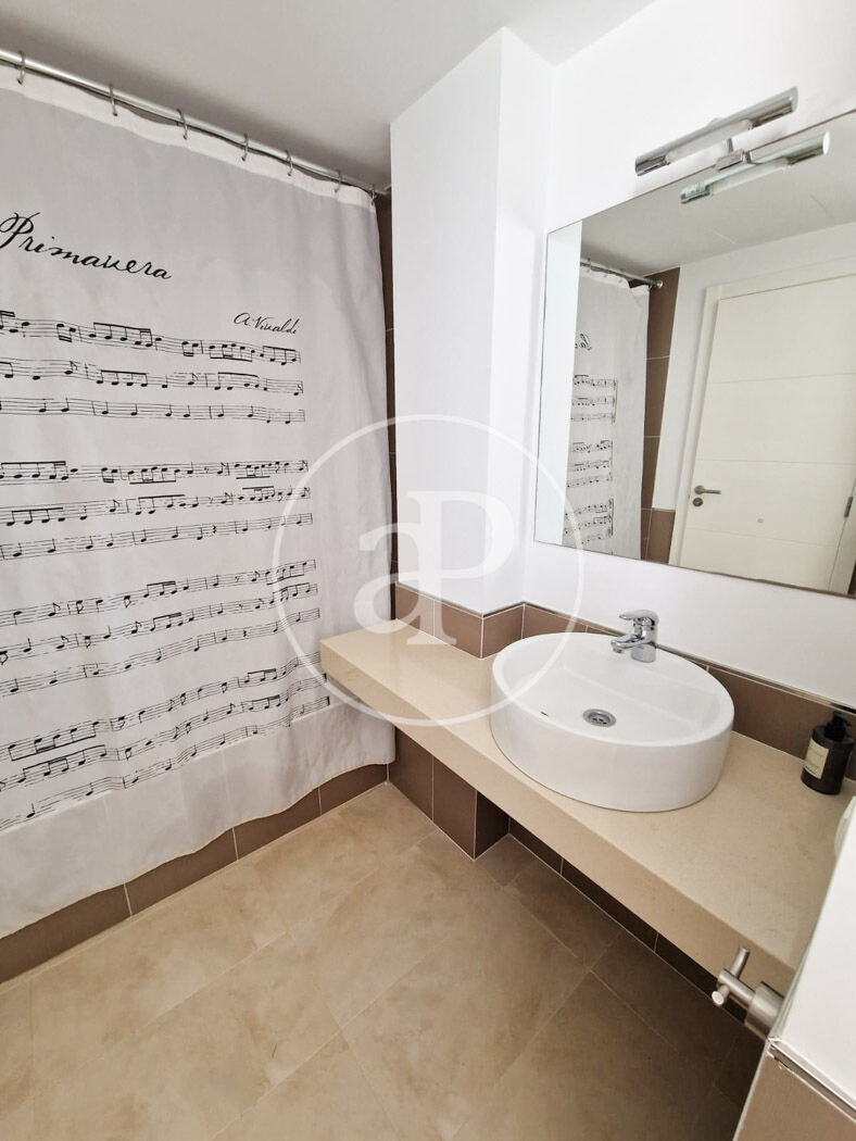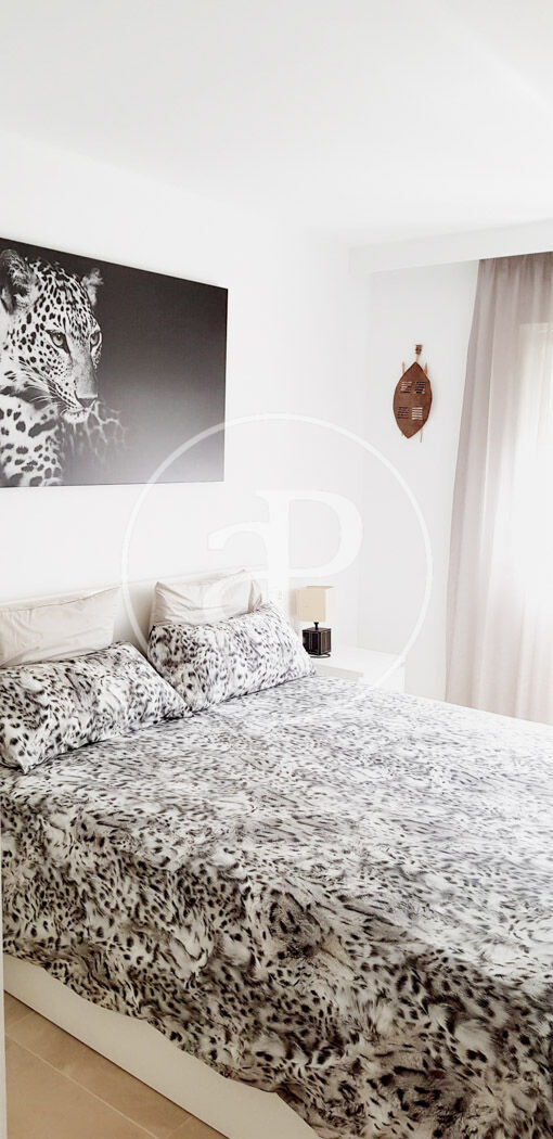 El pis distribuït sobre uns 120 m² més 12 m² de terrassa, compta amb 3 habitacions dobles, àmplies i totes amb A/A i armaris de paret. L'habitació principal compta amb un bany en suite ia més hi ha un altre bany compartit.
